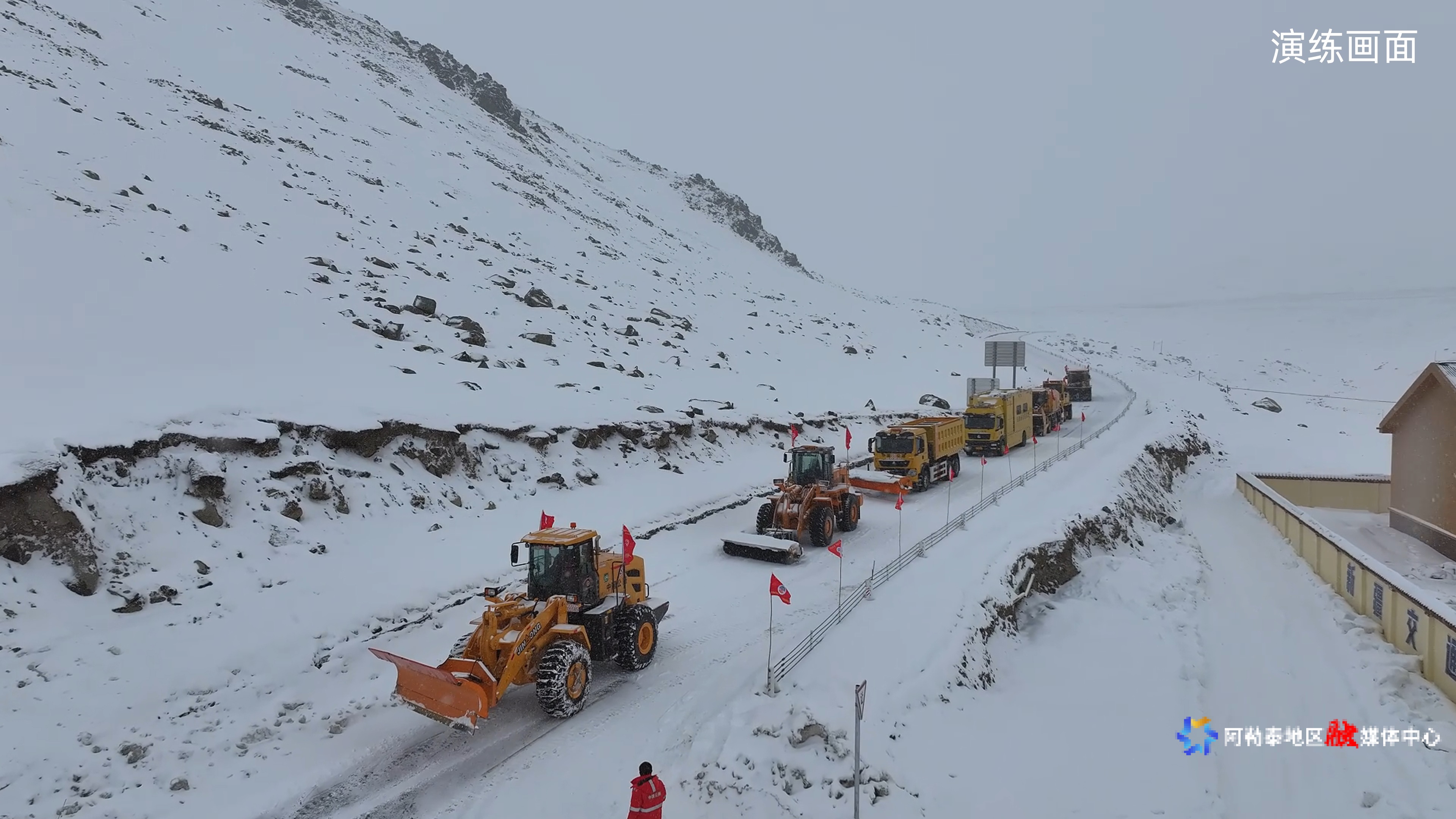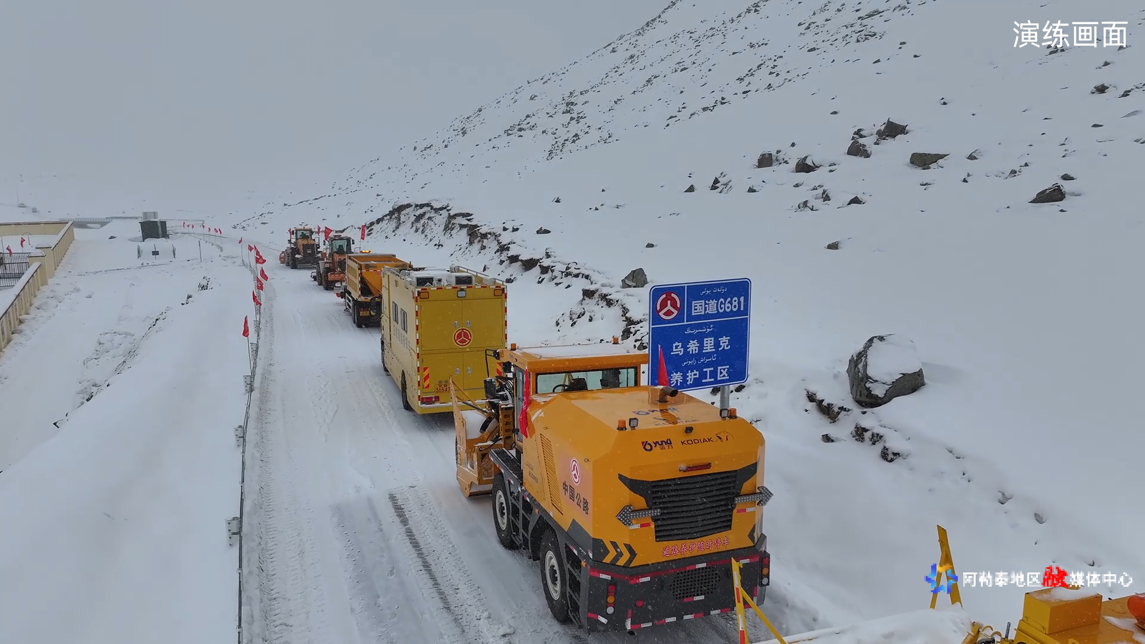 演练以除雪保畅为背景,聚焦冬季公路重大安全风险管控,按照预设情景,以“一中心+多现场”和“实兵实战实案”的方式组织实施。在阿勒泰公路事业发展中心设指挥中心,在G681线K48+200、K48+500分别开展风积雪、雪崩灾害处置演练。