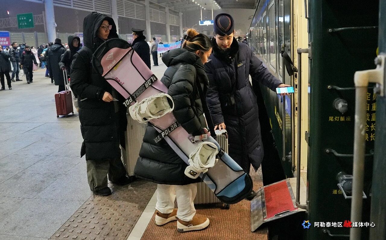 “为吸引更多国内外游客来疆赏雪滑雪,持续激发冰雪消费活力,我们优化铁路运输线路,将北疆沿途丰富的冰雪旅游资源串联在一起,在乌鲁木齐至阿勒泰间开行夕发朝至的冰雪主题列车,比同方向列车旅时最多压缩了4小时,为冰雪游爱好者提供更舒适便捷的出行选择。”中国铁路乌鲁木齐局集团有限公司客运部客票管理所销售分析室主任蒋燕说。