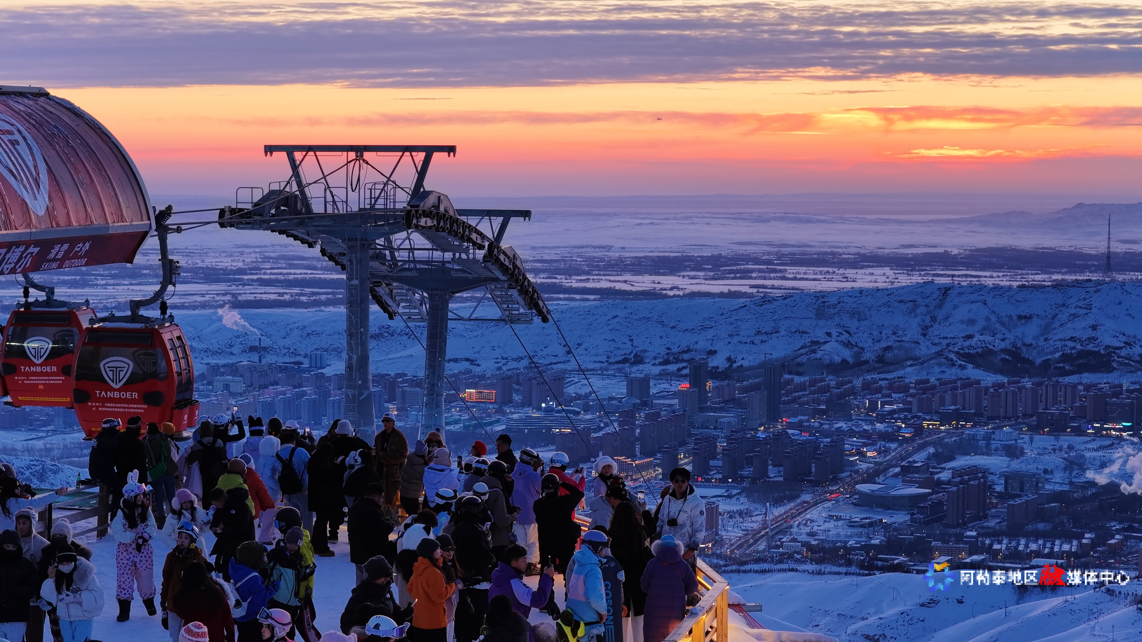 阿勒泰新闻网-阿勒泰地区融媒体中心(实习记者 王景鸿)1月1日17时,阿勒泰将军山国际滑雪度假区备受期待的山顶夕阳派对正式启幕。这座全国唯一坐落于城市中的高山滑雪场,以“粉雪为幕、落日为景”,为来自全国各地的雪友与游客打造了一场冰雪与浪漫交织的狂欢盛宴。