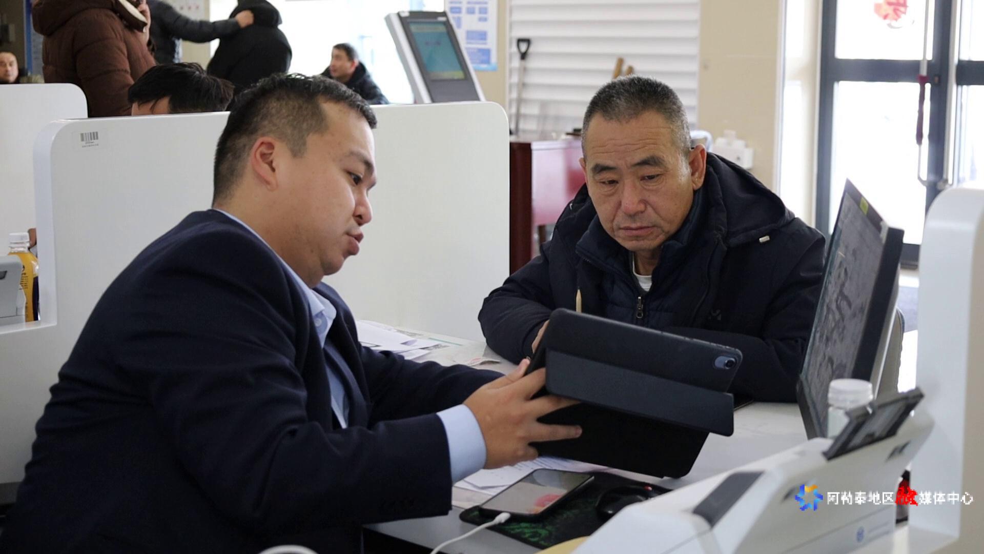 1月26日,在新疆农商银行阿勒泰市支行服务大厅,阿苇滩镇青格劳村村民潘丽建正在办理小微e贷业务。该产品年利率低至3.0%,最高额度可达100万元,能有效降低融资成本、满足客户大额需求。“这款贷款手续简单,到账快、额度大、利率低。期盼2026年有个好收成。”潘丽建说。