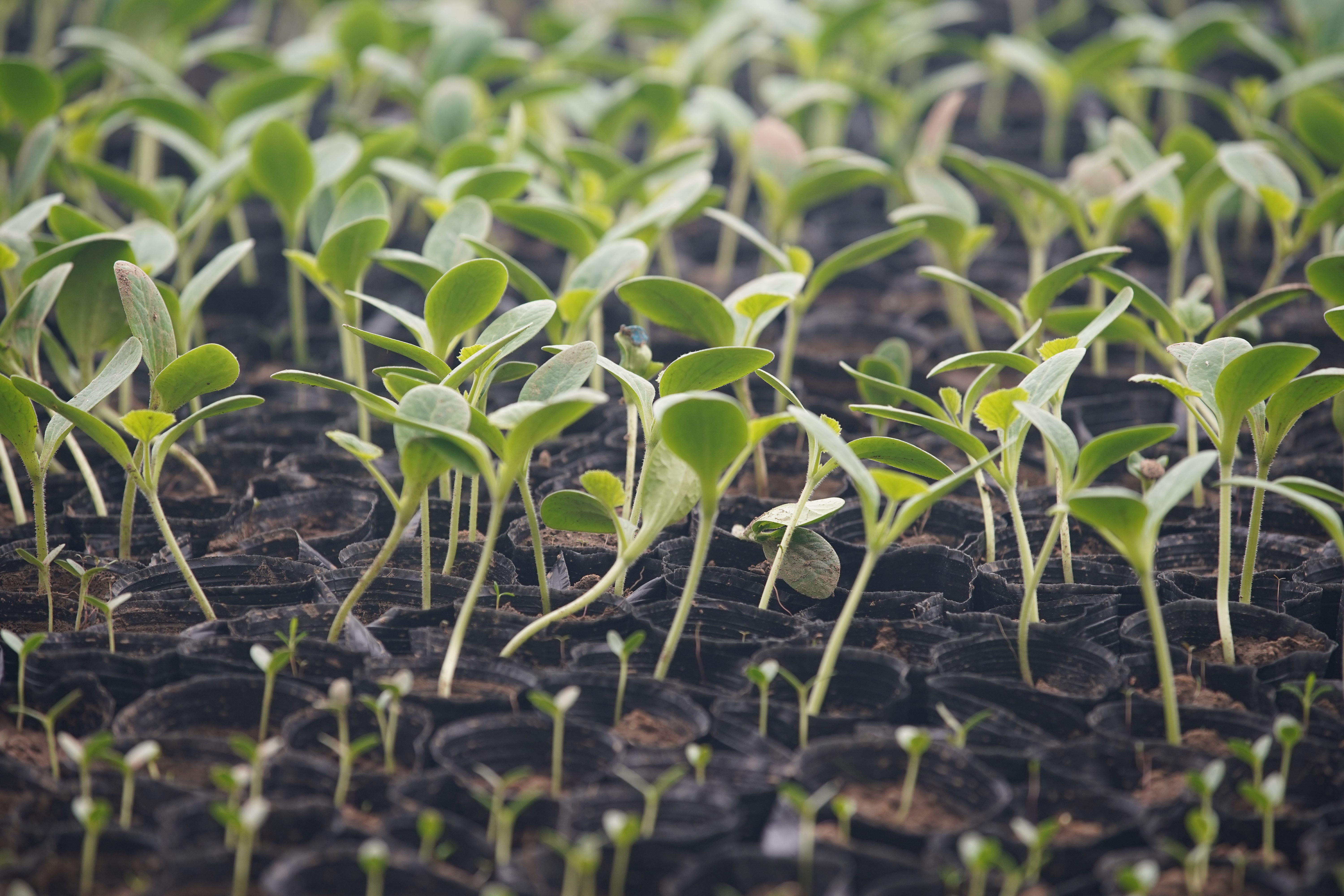 富蕴县喀拉通克镇蔬菜大棚内一排排种苗长势喜人。通讯员 阿吴英·哈得勒别克摄