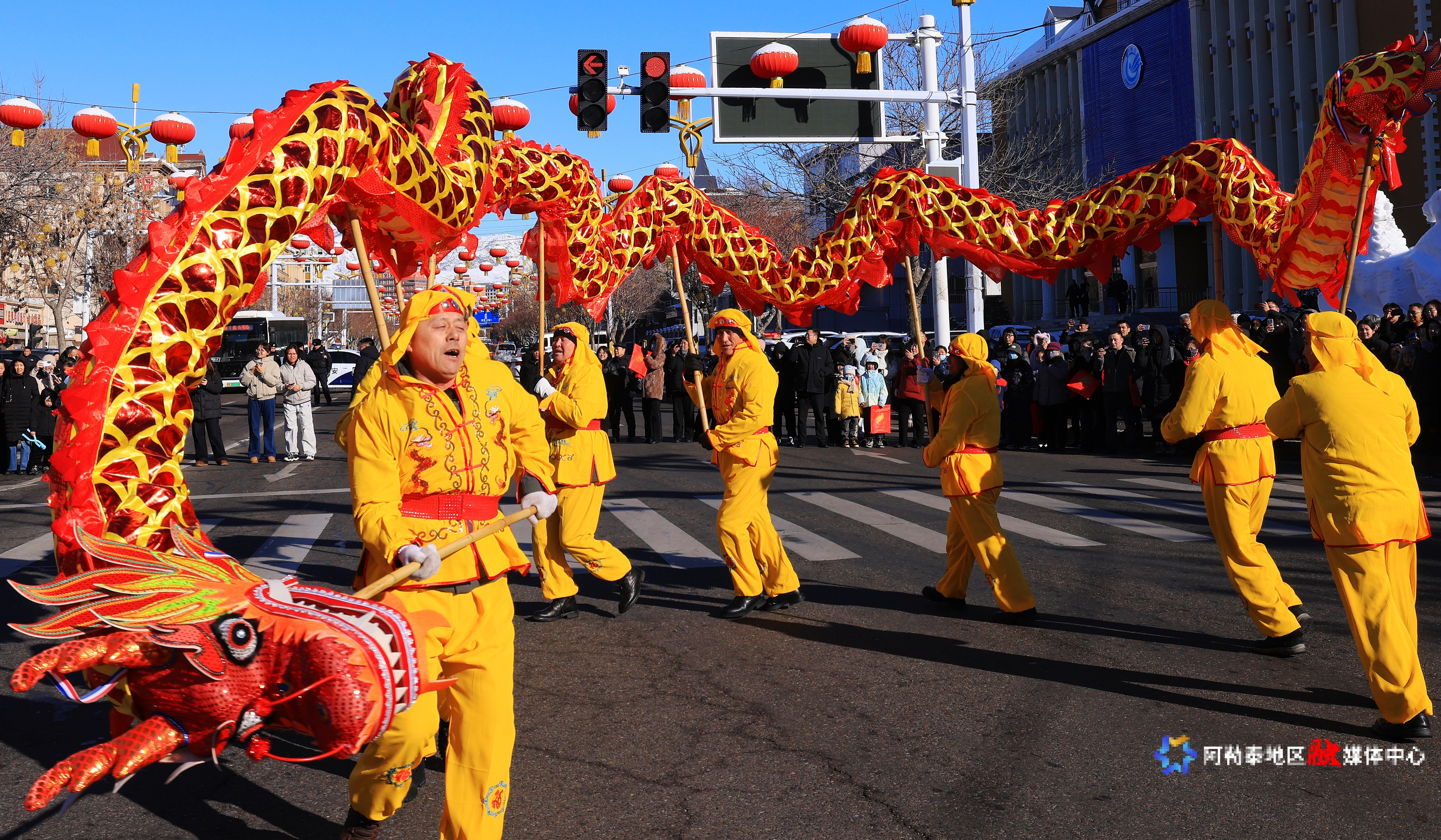 众多市民和游客沿街驻足,沉浸式感受锣鼓喧天、欢歌笑语的新春氛围,体验看得见、摸得着、感受得到的烟火气息。广东游客叶海燕感叹:“冰雪美景配热闹民俗,体验感拉满!祝雪都越来越好,新春大吉!”