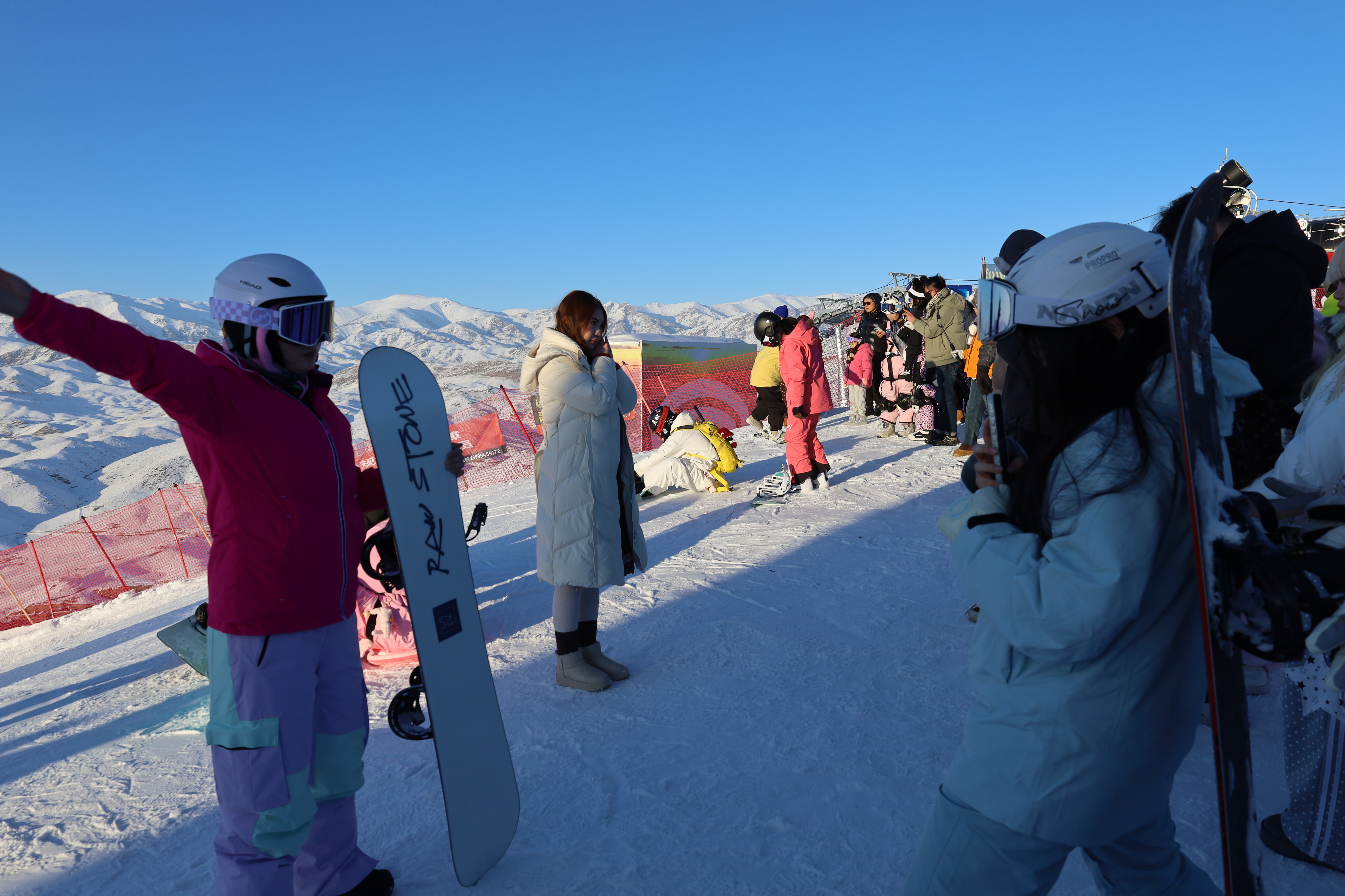 当日傍晚,将军山顶人头攒动、气氛热烈,夕阳与雪山相映,勾勒出绝美的冬日画卷。伴随着浪漫的蓝调时刻,雪友们踏雪欢聚、尽情狂欢,用独特的方式解锁除夕新体验,成为冬日阿勒泰一道亮丽的风景。