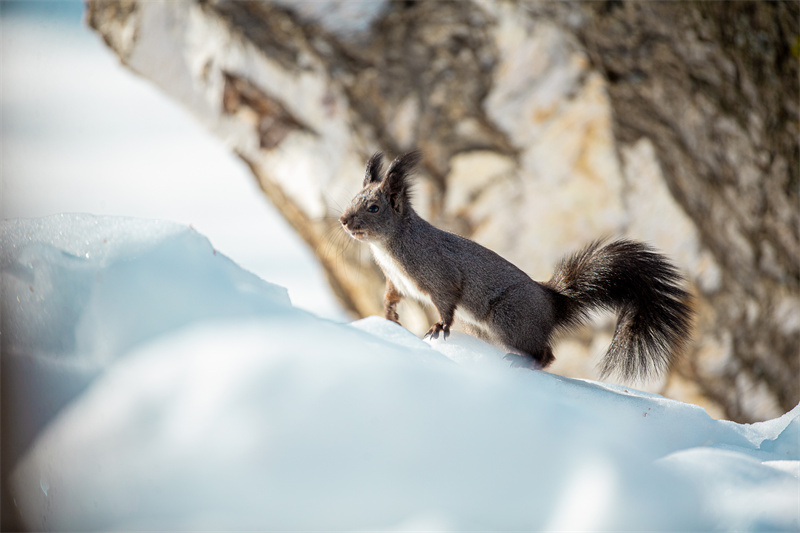 小松鼠在林间自在撒欢。