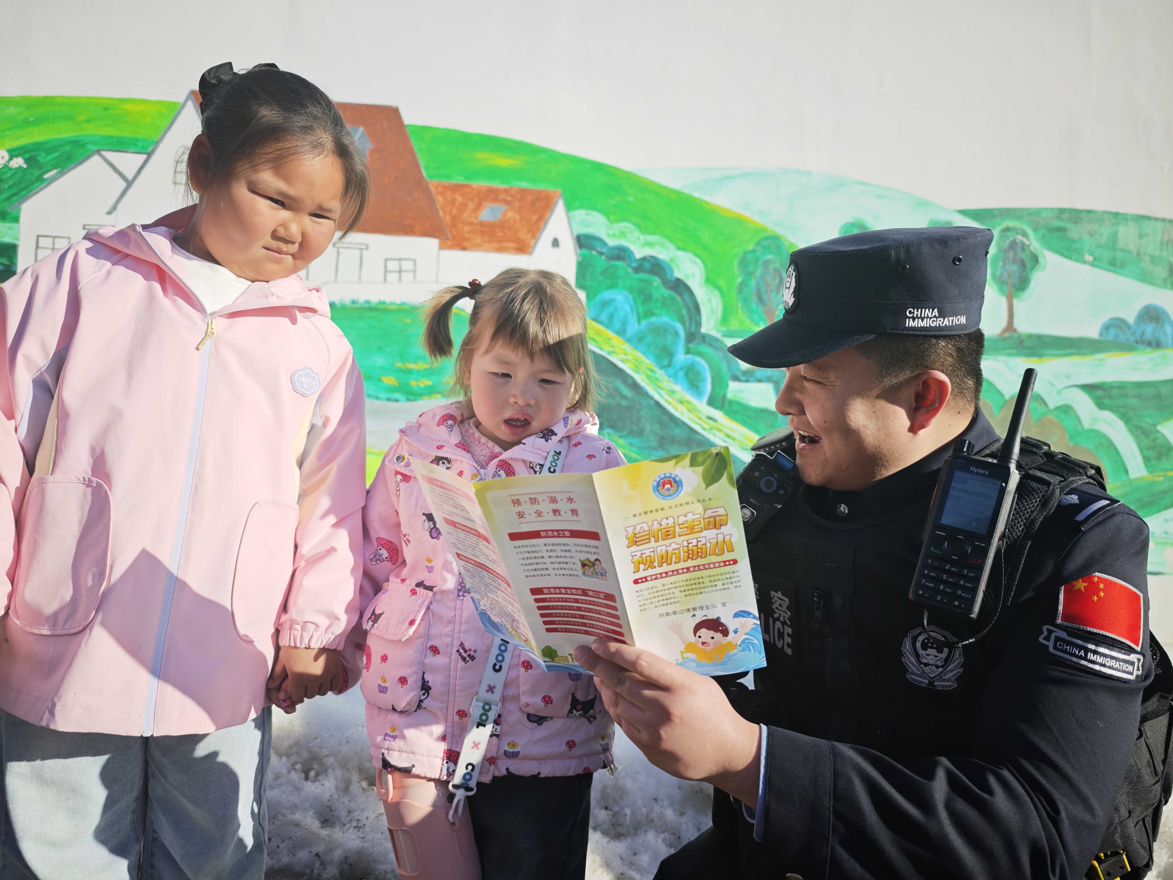 阿勒泰新闻网-阿勒泰地区融媒体中心(实习记者 叶丽娜·努坤 通讯员 唐易鑫)“哪怕是熟悉的水域,也绝不能让孩子单独靠近。”3月31日,在阿勒泰市汗德尕特蒙古族乡,阿勒泰边境管理支队汗德尕特边境派出所民警手持宣传手册,用“大白话”向过往群众反复叮嘱,以更接地气的方式织密安全防护网,并加大重点时段、重点区域巡查力度,推动防溺水安全意识深入人心,全力守护群众生命安全。