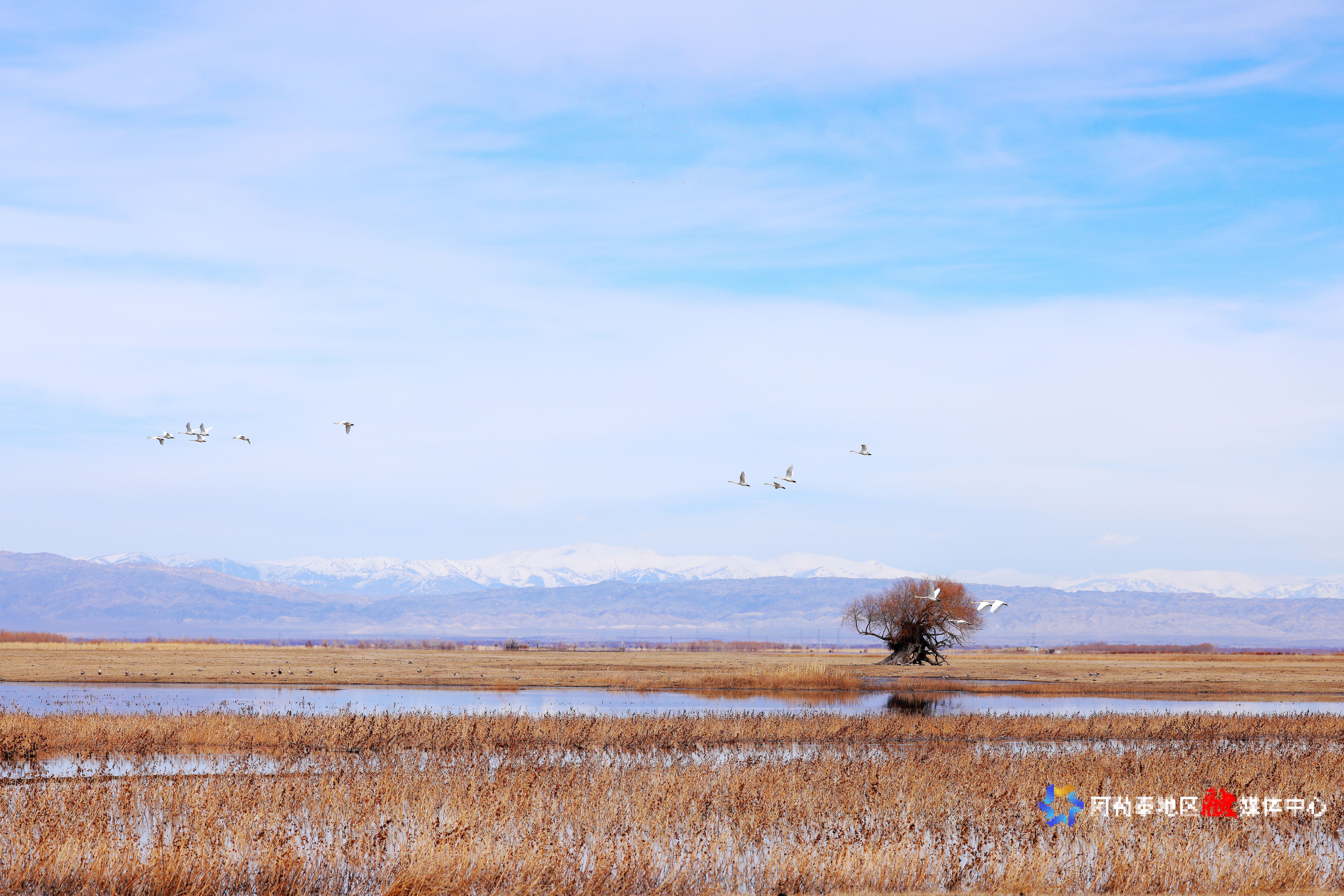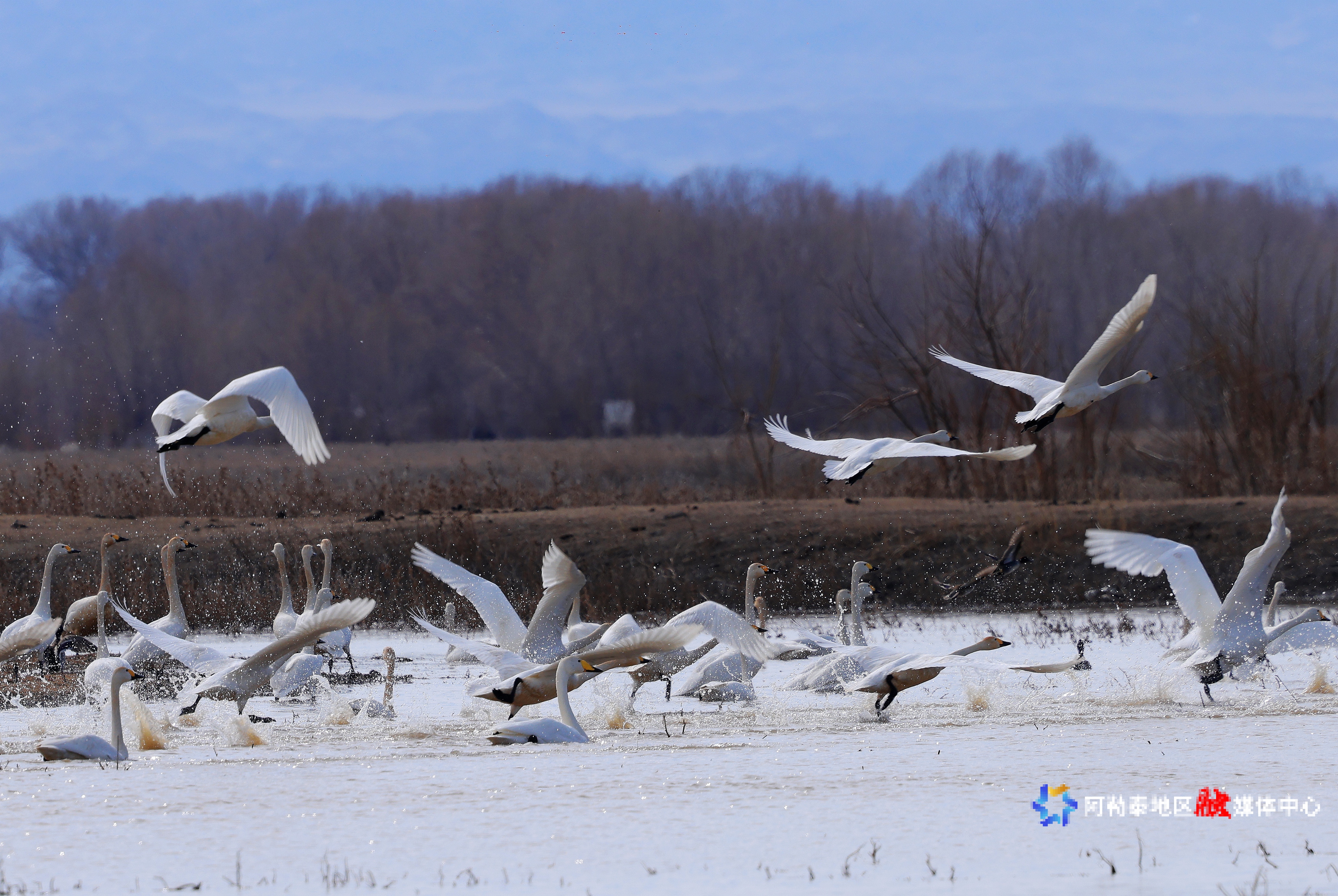 阿勒泰新闻网-阿勒泰地区融媒体中心(记者 阿尔达克·拜斯汗)春回大地,积雪消融。阿勒泰科克苏湿地国家级自然保护区水网复苏,枯黄的芦苇渐添新绿,水草丰茂,吸引着大批天鹅从南方地区迁徙而来。它们时而在水中悠然觅食,时而振翅翱翔,与初春的湿地构成一幅灵动的生态画卷。 记者 阿尔达克·拜斯汗 摄