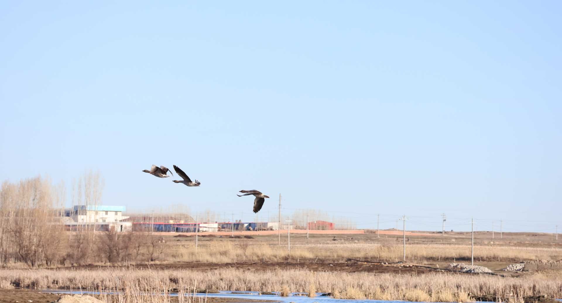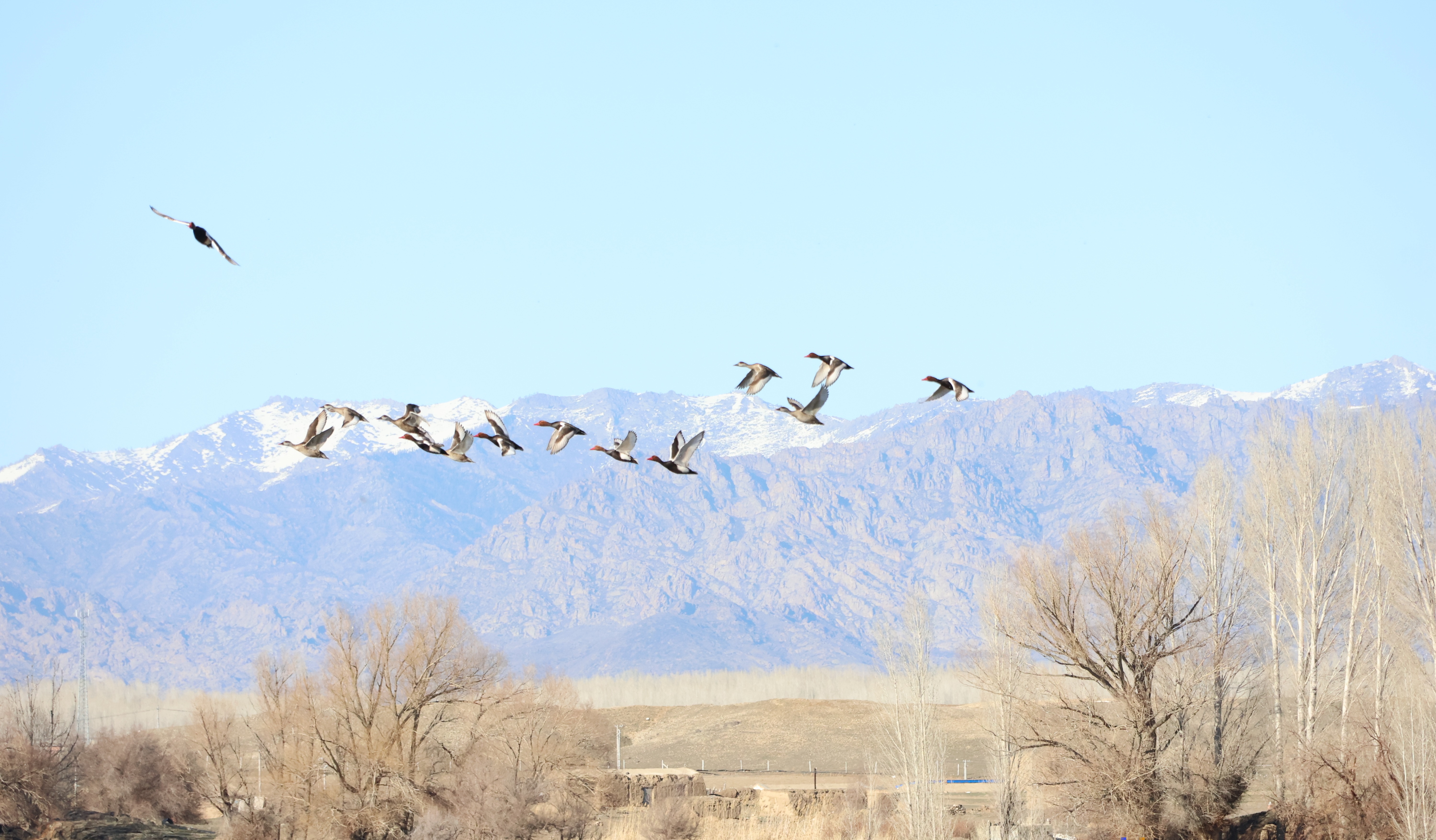 雪融水活,万羽翩跹,天地为幕,山河入画。成群的候鸟时而低飞掠过,时而悠然游弋,为浪漫春日增添了一抹抹灵动生机。