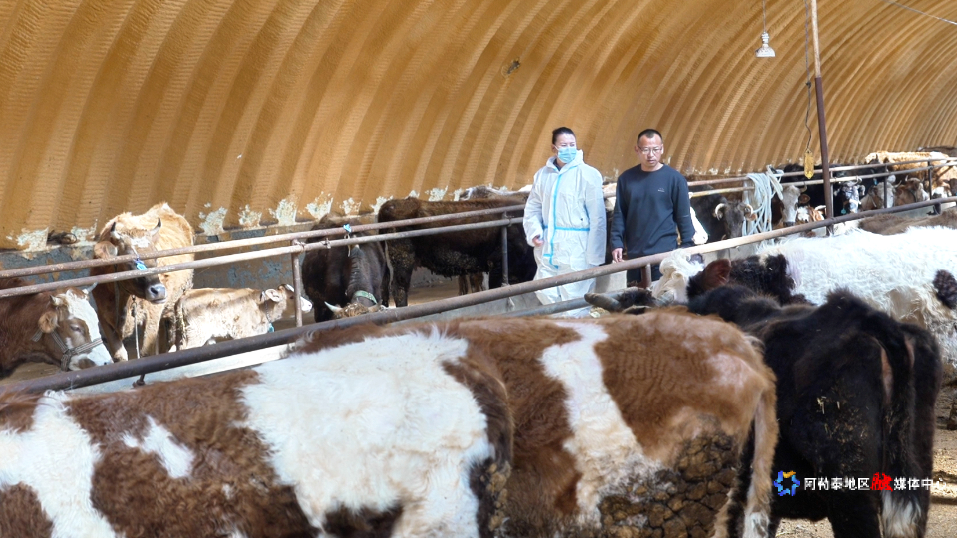 叶丽努尔·巴合道吾列提在吉木乃县犇磊鑫畜牧养殖合作社,为当地牧民及各养殖合作社提供技术指导服务。