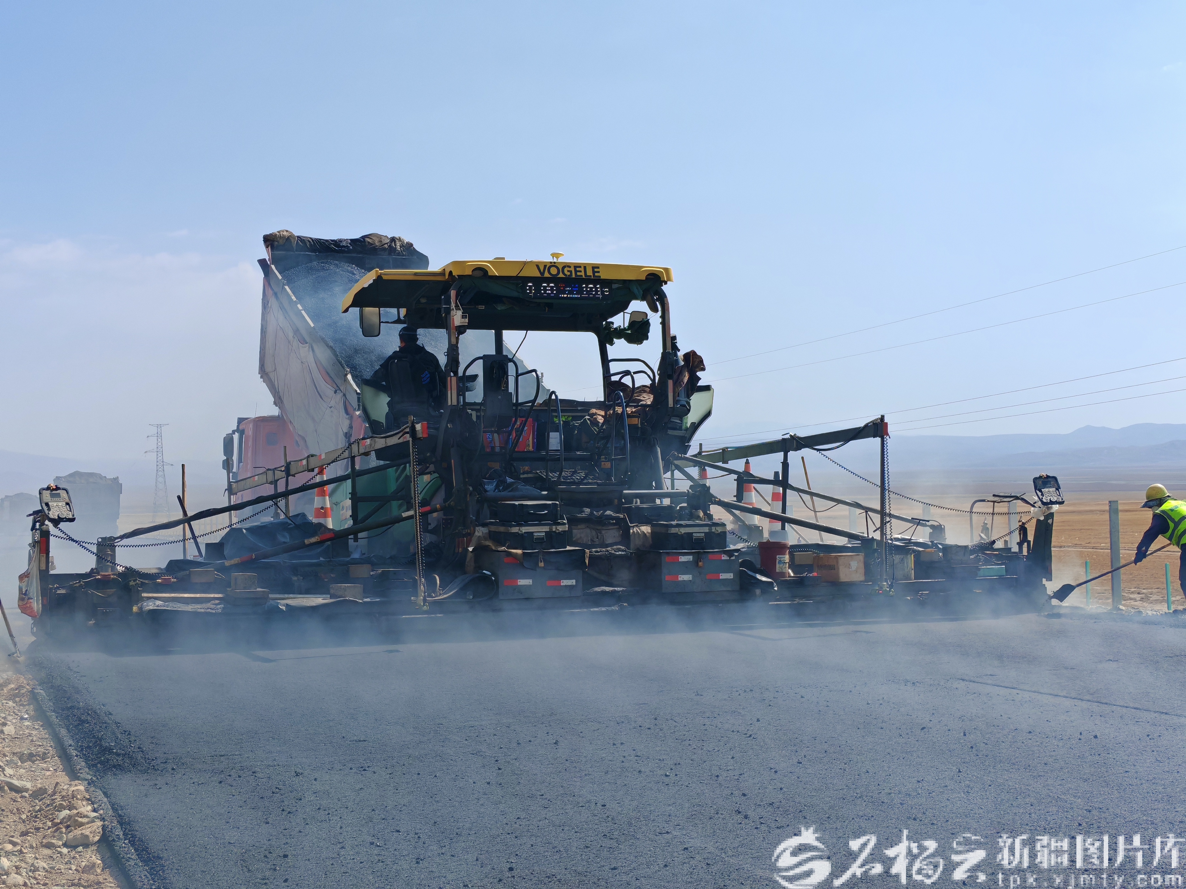 9月13日,那巴公路项目在加紧摊铺沥青。天山网-新疆日报记者 逯风暴摄