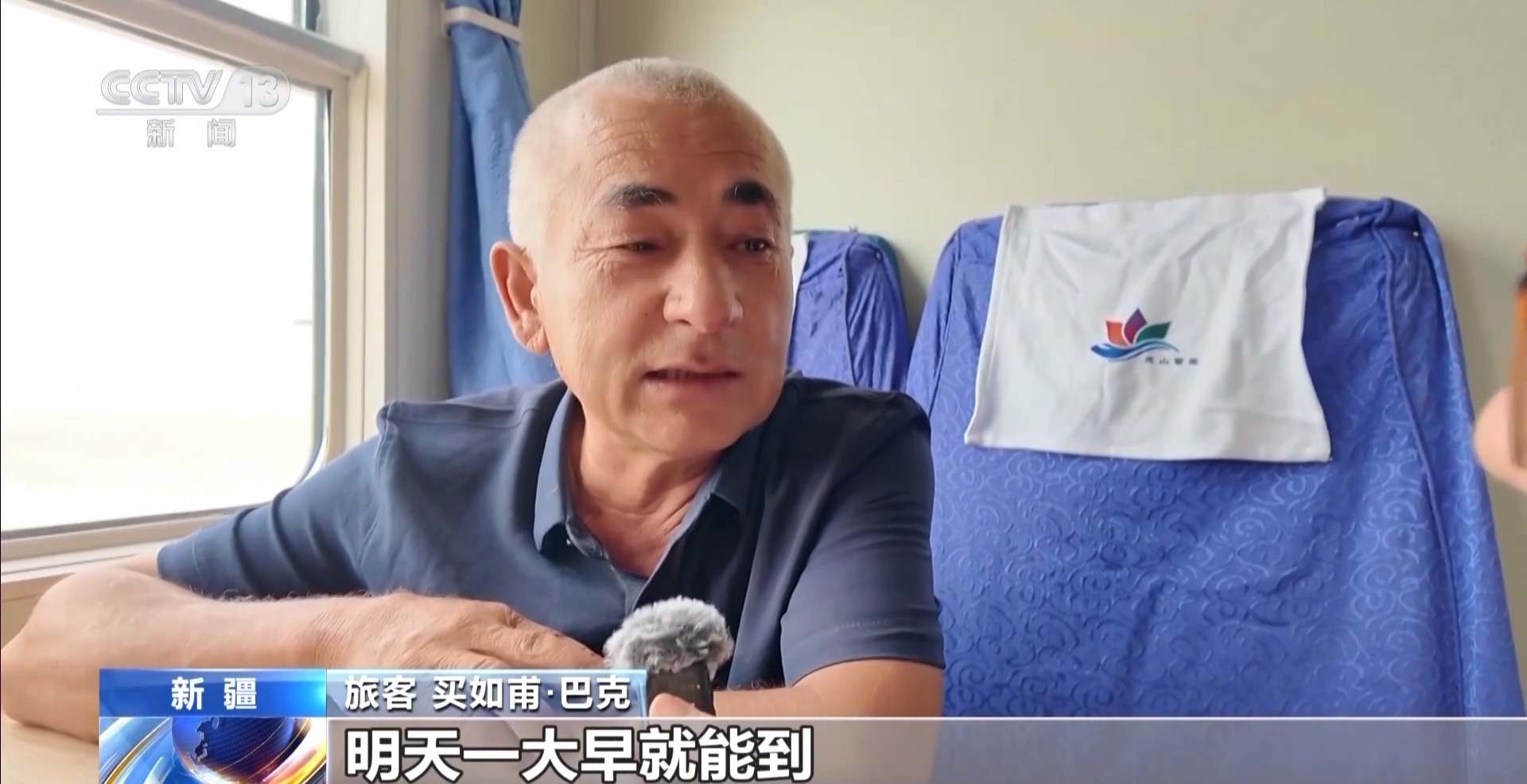 旅客 买如甫·巴克:我去库尔勒,明天一大早就能到。要是以前,路上起码得六七天。这一列火车能坐好多人,想去哪里都能去,现在实在是太好了。