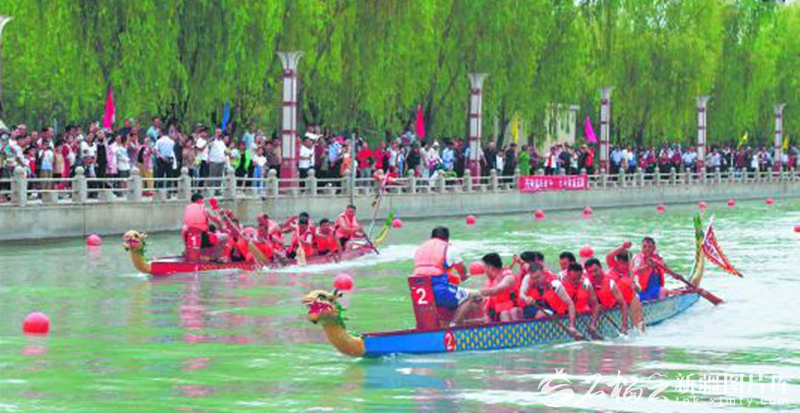 5月31日,龙舟选手在阿瓦提县刀郎河景观带河面上竞逐。当日,阿瓦提县举办第一届“石榴籽·铸牢杯”端午节赛龙舟活动,共30支队伍参赛。包良廷摄