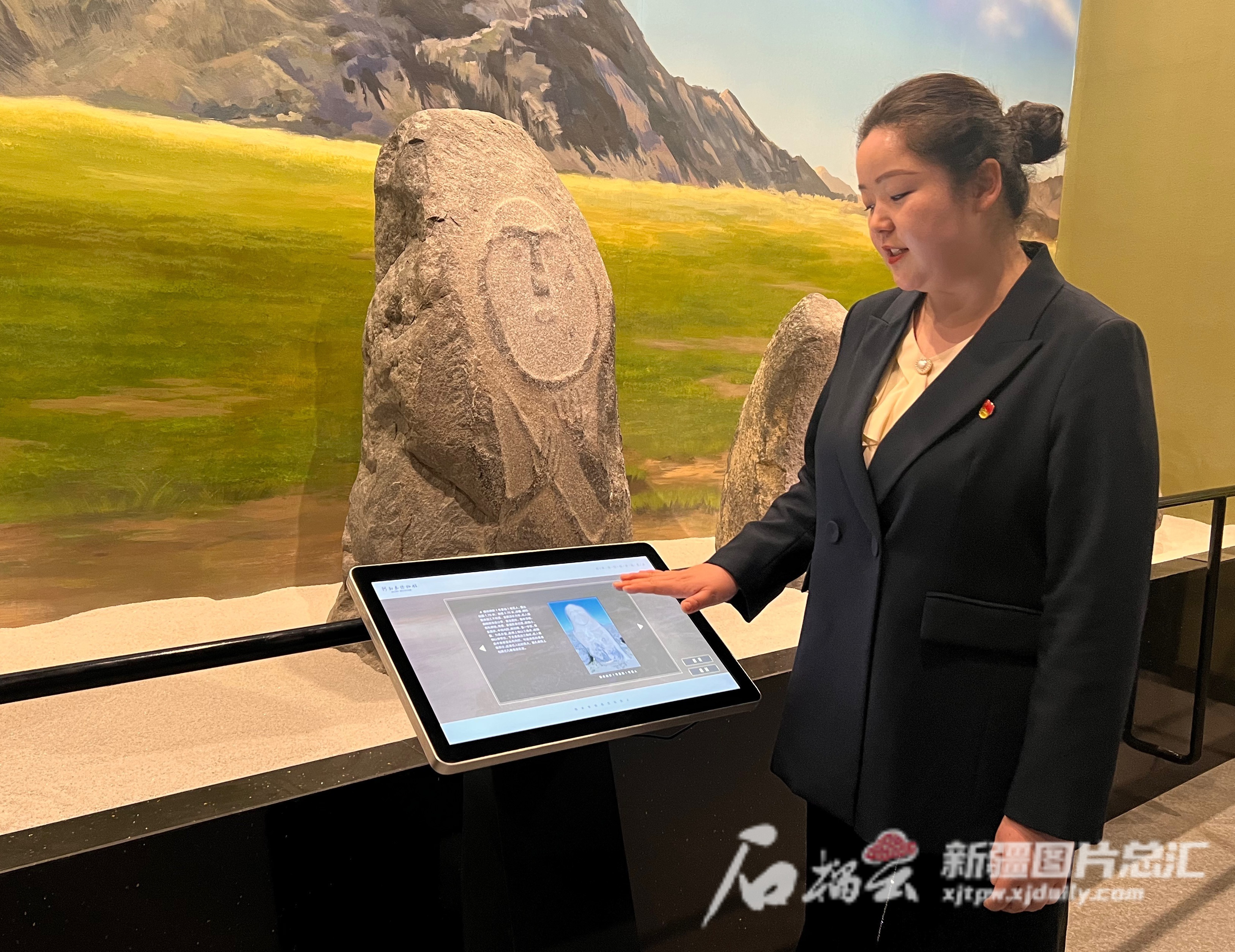 走进阿勒泰地区文博院(博物馆),卓娅·巴合提向记者展示可与观众互动的数字屏幕。(资料图)天山网-新疆日报记者 米日古力·吾摄