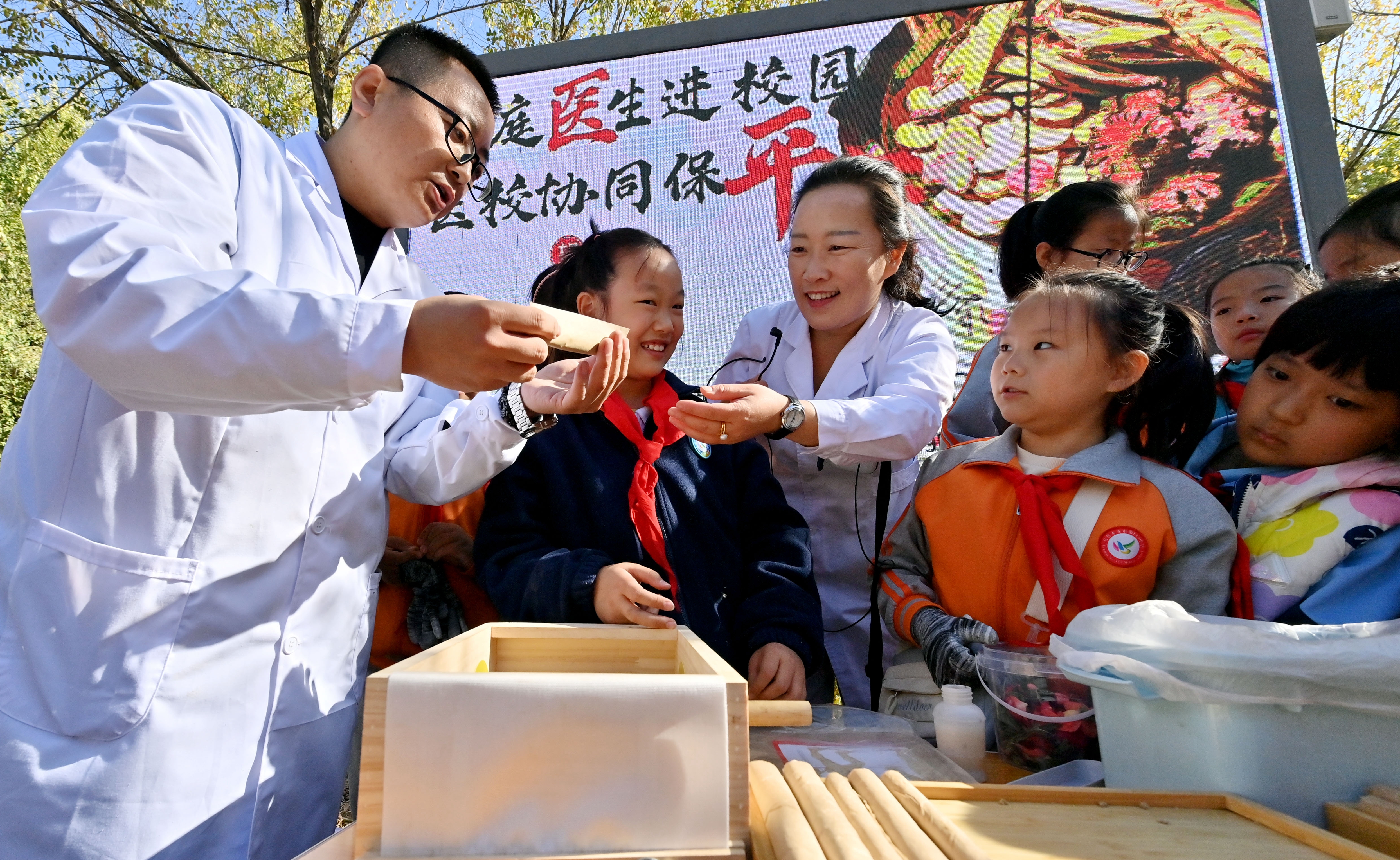 10月10日,医生们带领同学们制作艾条。石榴云/新疆法治报记者 单坤摄