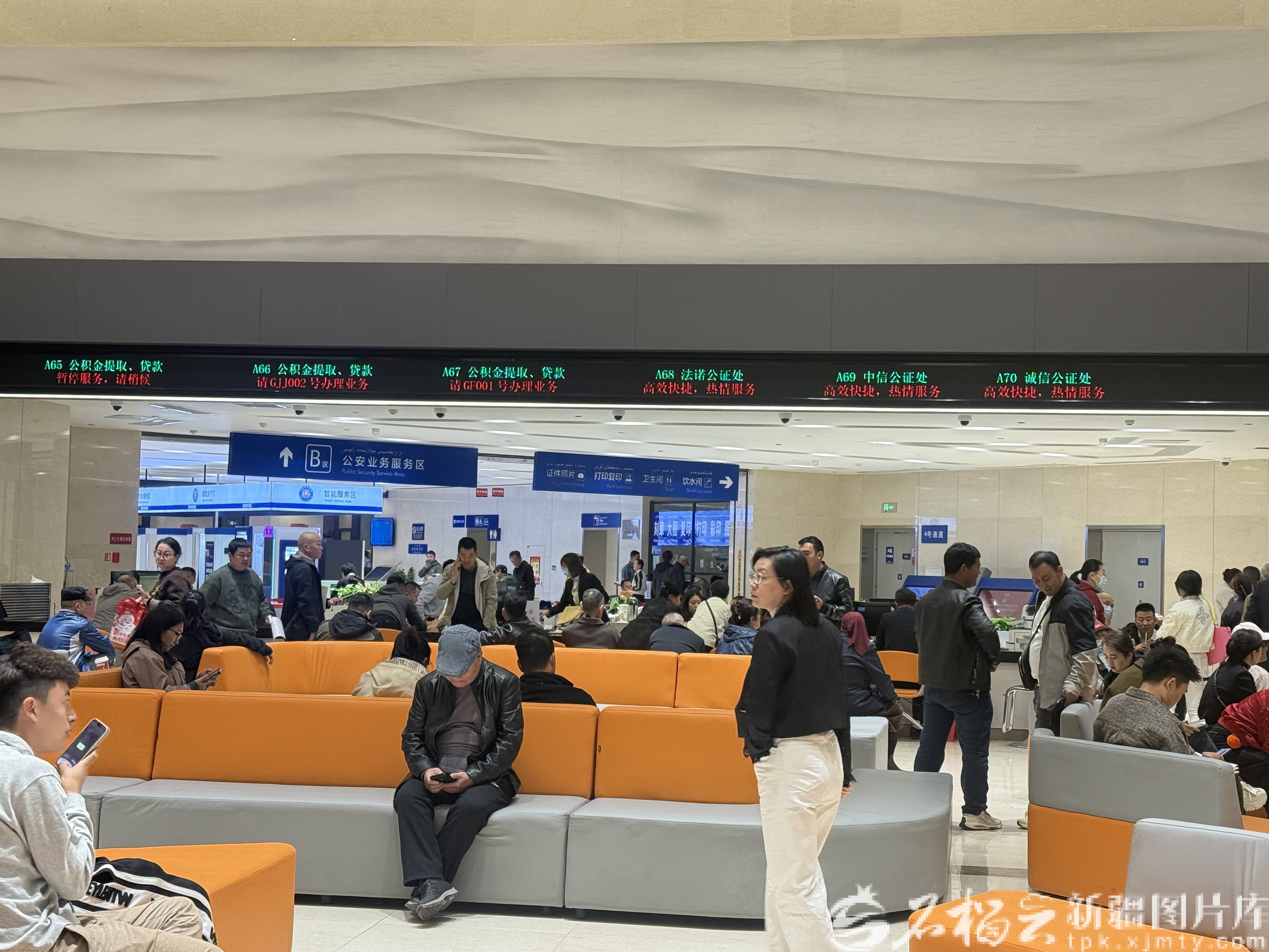 10月10日,乌鲁木齐市政务服务大厅所有办事窗口开放,取号、排队、办理等环节井然有序。记者 郭倩摄