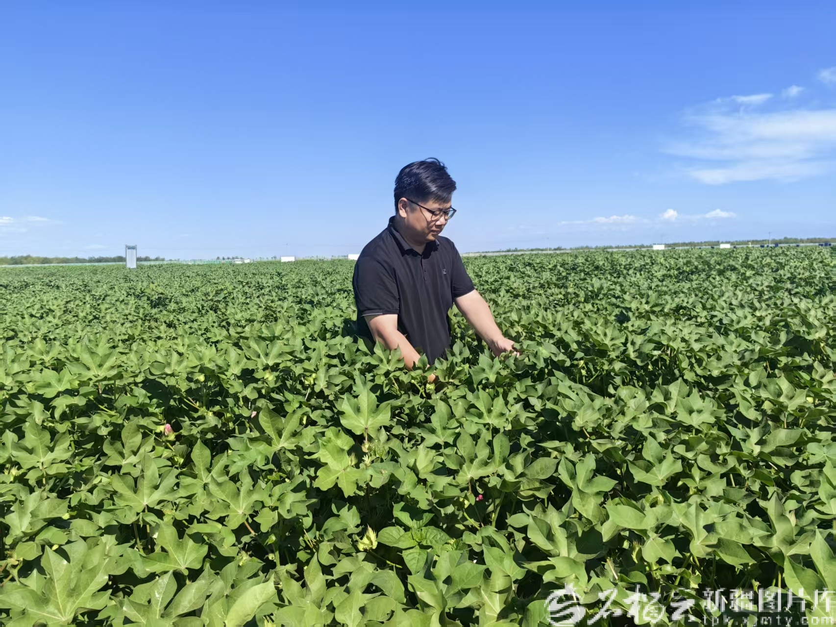 中国农业科学院西部农业研究中心棉花布局与低碳生产技术创新团队首席科学家王占彪在棉田进行田间调查。图/受访者提供