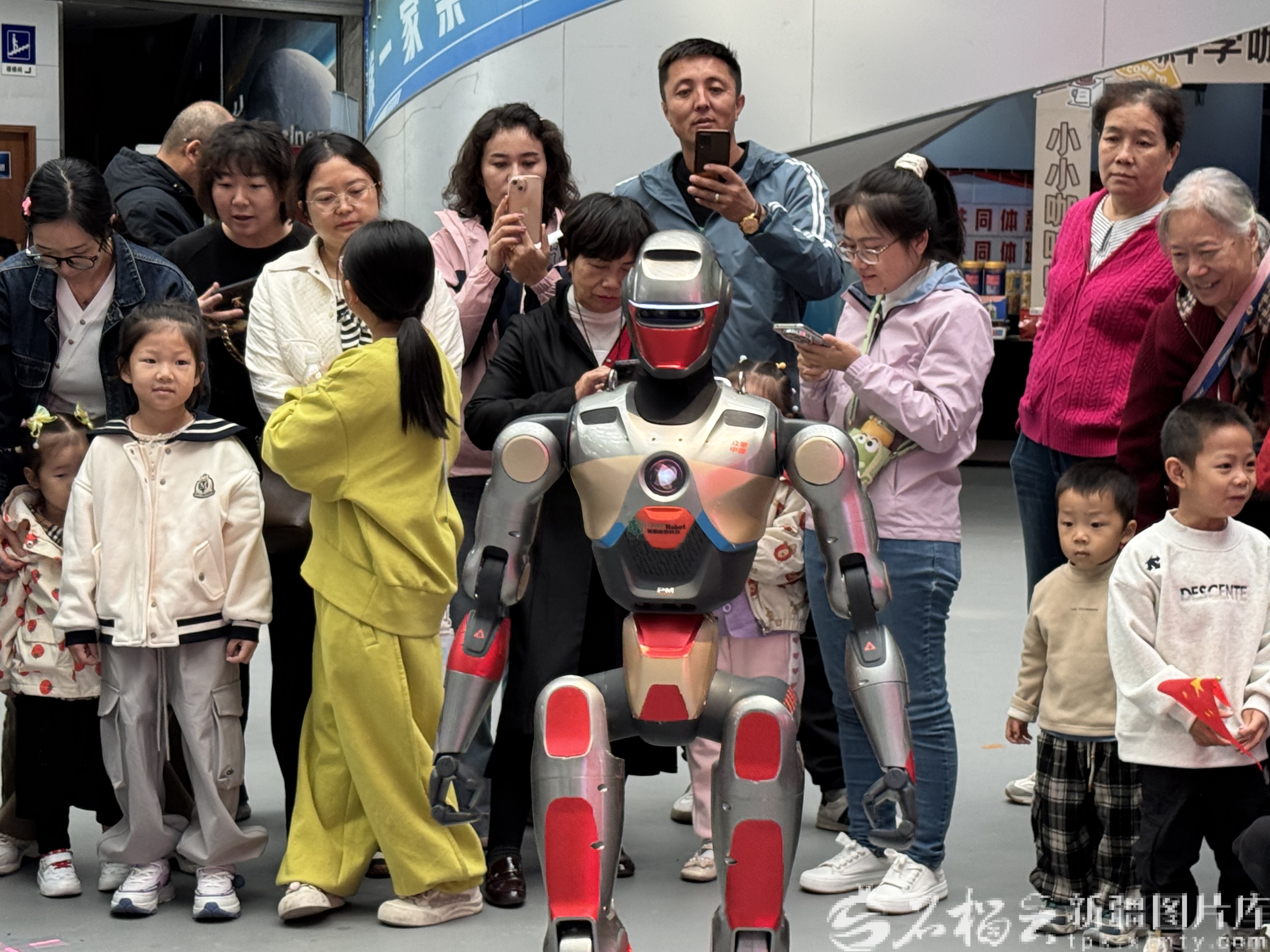10月7日,新疆科技馆内,造型各异的机器人被观众层层包围,掌声与惊叹声此起彼伏。