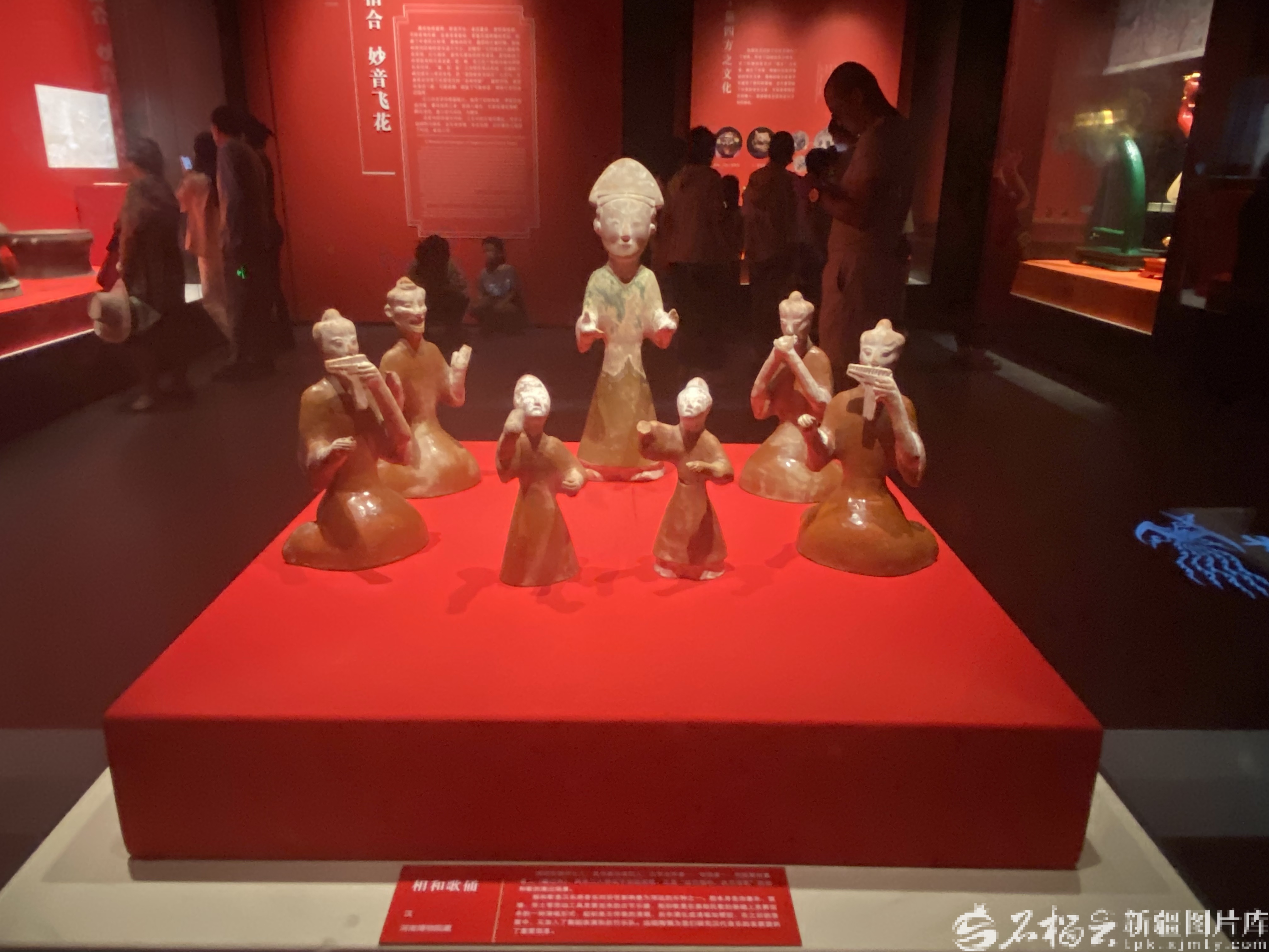 在新疆博物馆国博厅里,一组来自汉代的相和歌俑静静陈列在展柜里,它们形态各异、表情生动。