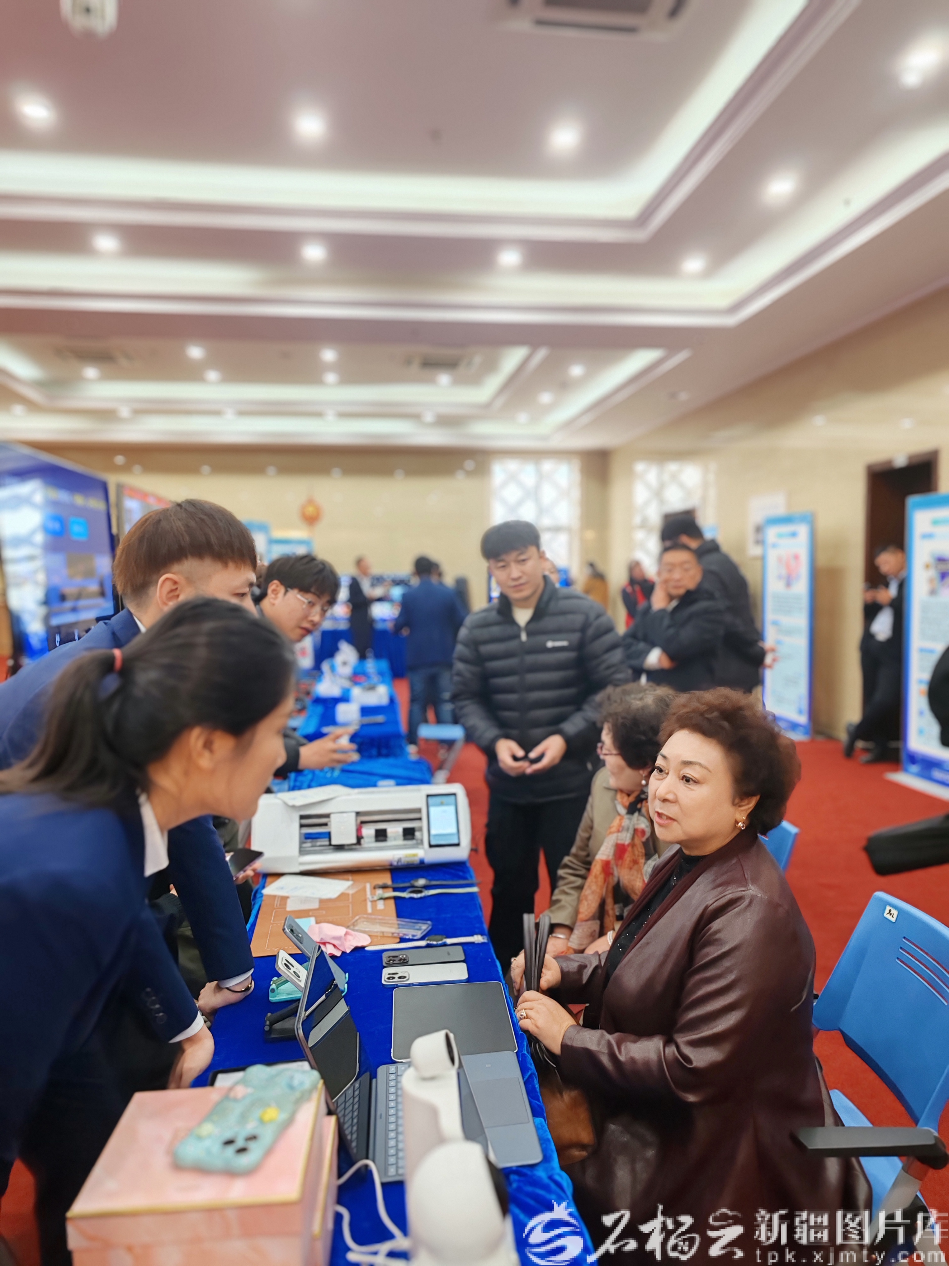 10月14日,在活动现场设置的“敬老助老服务展区”,工作人员正在认真向老年人介绍适老化改造的相关电子产品。天山网-新疆日报记者 魏红萍摄