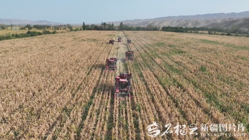 9月末,玛纳斯县包家店镇的制种玉米地里,农机来回穿梭收割玉米,一派丰收的繁忙景象。玛纳斯县融媒体中心供图