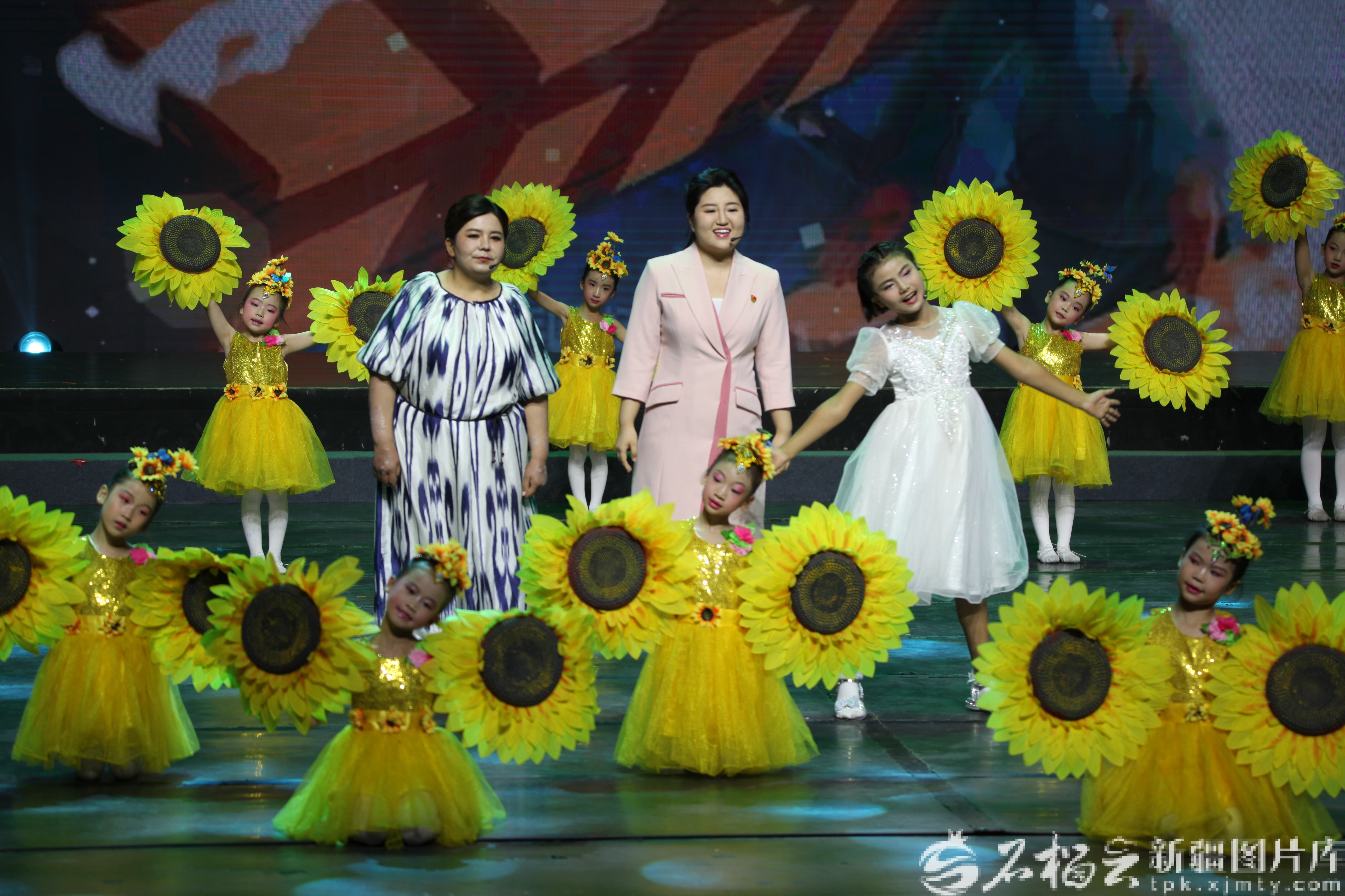 毛晓彤(第二排中)和阿尔孜古丽(第二排左)、阿依夏(第二排右)一起参加活动。本人供图