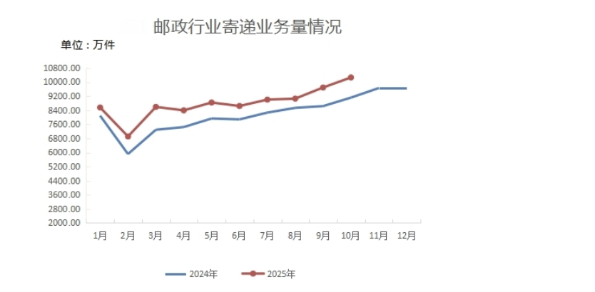 石榴云/新疆日报讯(记者 范琼燕报道)11月24日,记者从新疆邮政管理局获悉:2025年10月新疆邮政行业运行情况发布,1—10月,新疆快递业务收入累计完成66.35亿元,快递业务量累计完成46607.29万件,分别同比增长12.84%、30.37%。