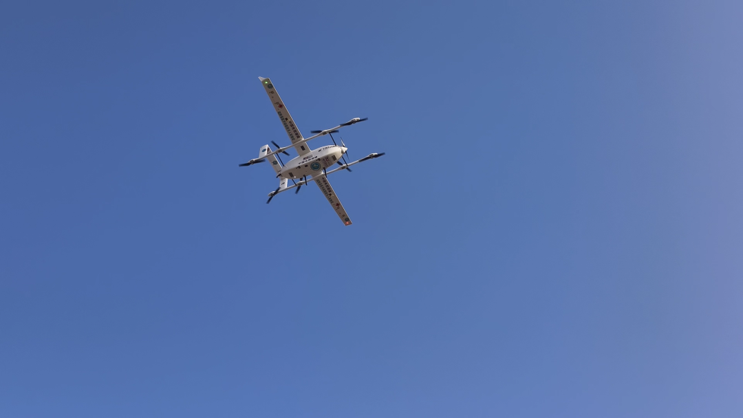 在现场嘉宾的共同见证下,无人机从起降点缓缓升空,机身在低空平稳悬停调整姿态后,按照预设航线展开飞行。现场电子屏上,无人机的飞行轨迹、实时速度等清晰可见,全程实现精准定位。