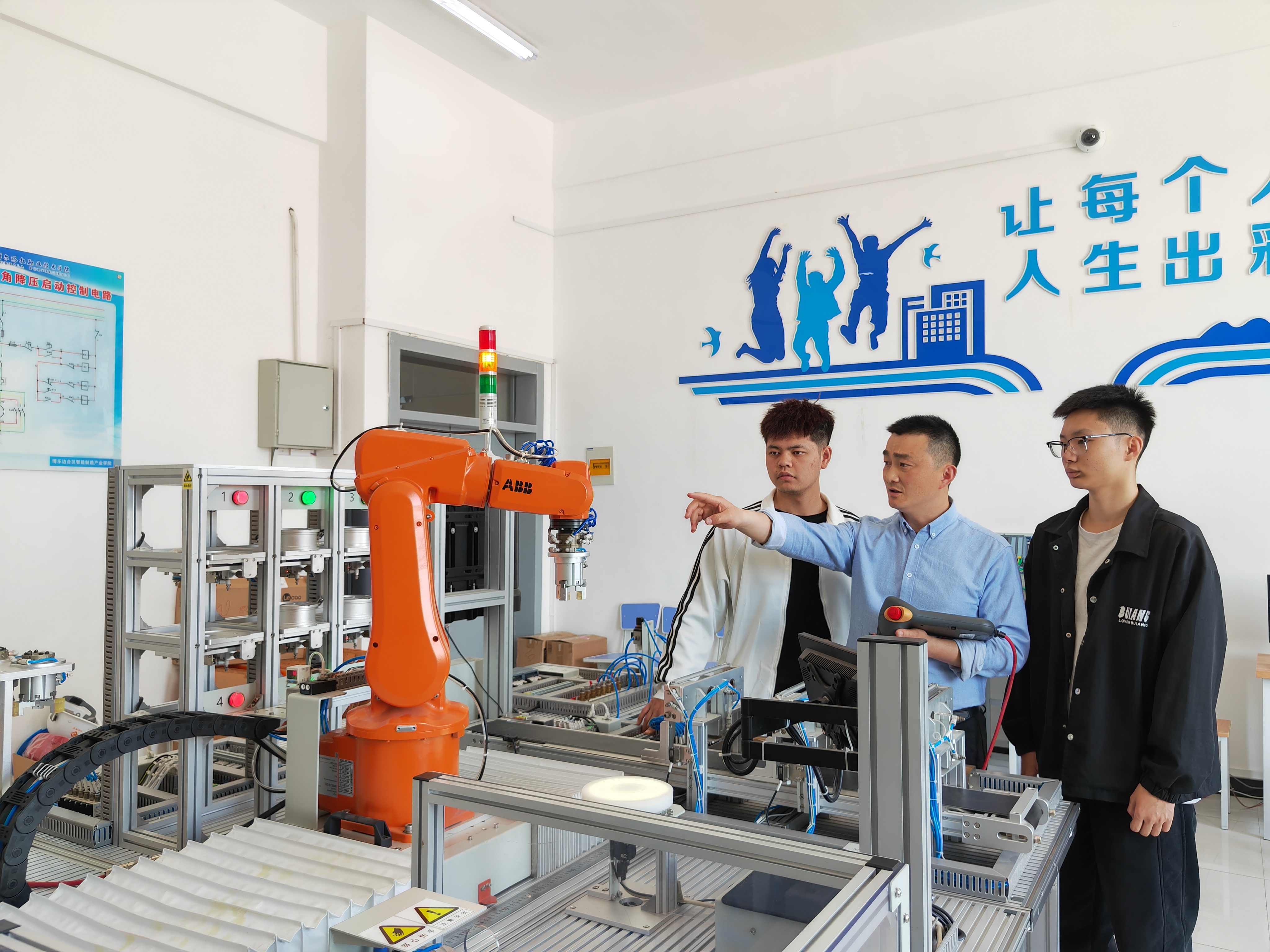 11月24日,高锦南指导学生操作机器人设备。吴志远 摄