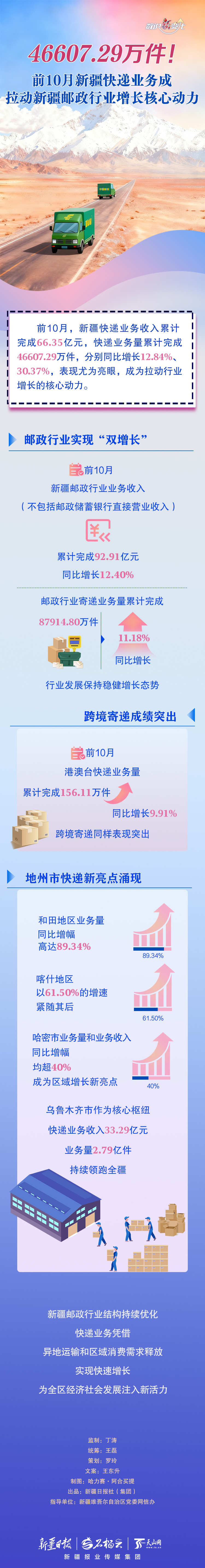 数说“新”变化|46607.29万件!前10月新疆快递业务成拉动新疆邮政行业增长核心动力