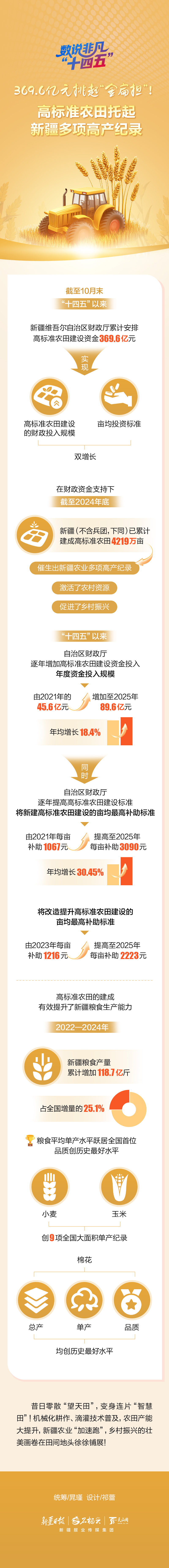 数说非凡“十四五”丨369.6亿元挑起“金扁担”!高标准农田托起新疆多项高产纪录