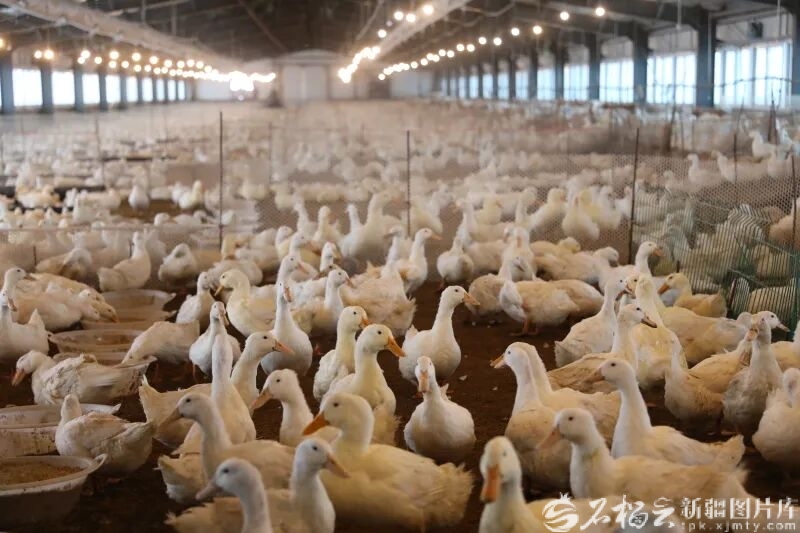 一排排蓝顶建筑,整齐划一。这是塔城国家级重点开发开放试验区百福升农牧发展有限公司(以下简称“百福升公司”)的种鸭舍。