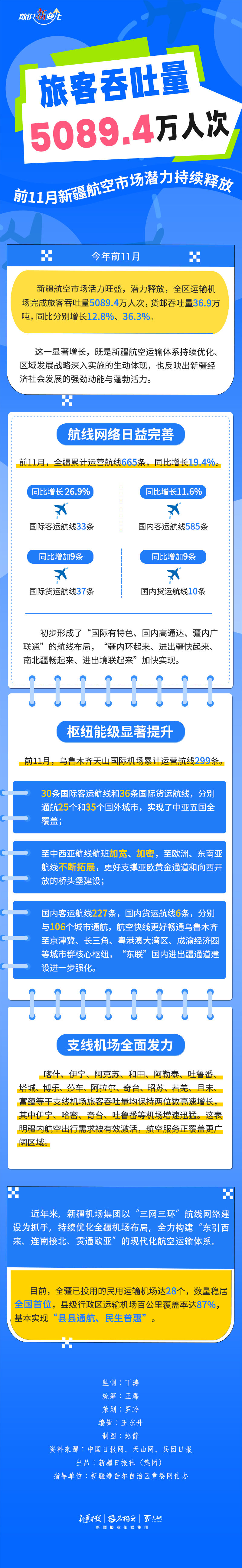 数说“新”变化丨旅客吞吐量5089.4万人次 前11月新疆航空市场潜力持续释放