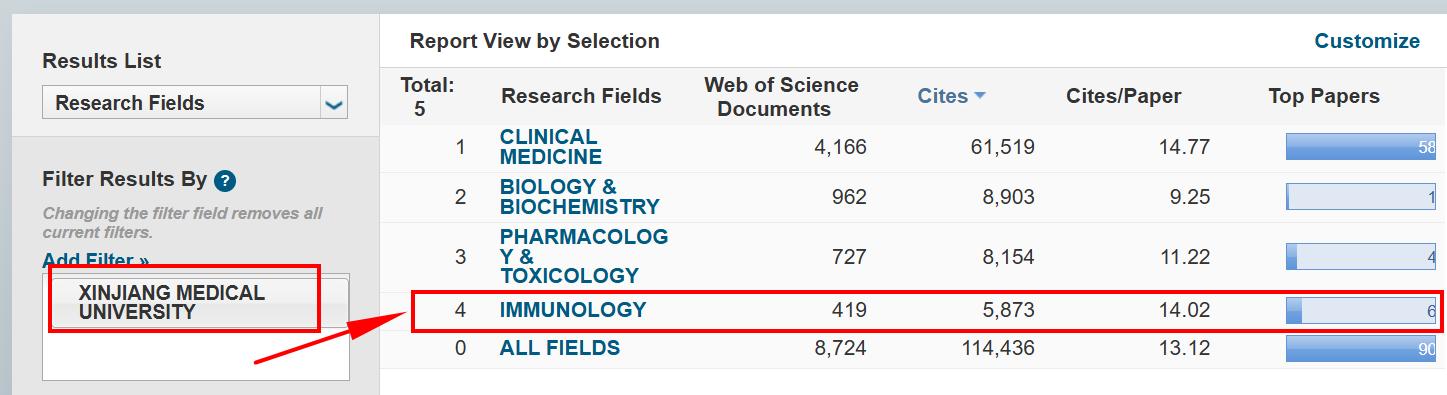 数据显示,新疆医科大学免疫学学科在进入ESI全球排名前1%的1213个机构中位居第1173名,收录的WOS(国际知名的学术论文索引数据库)论文数为419篇,总被引频次5873次,篇均被引14.02次,高水平论文6篇,均为高被引论文。