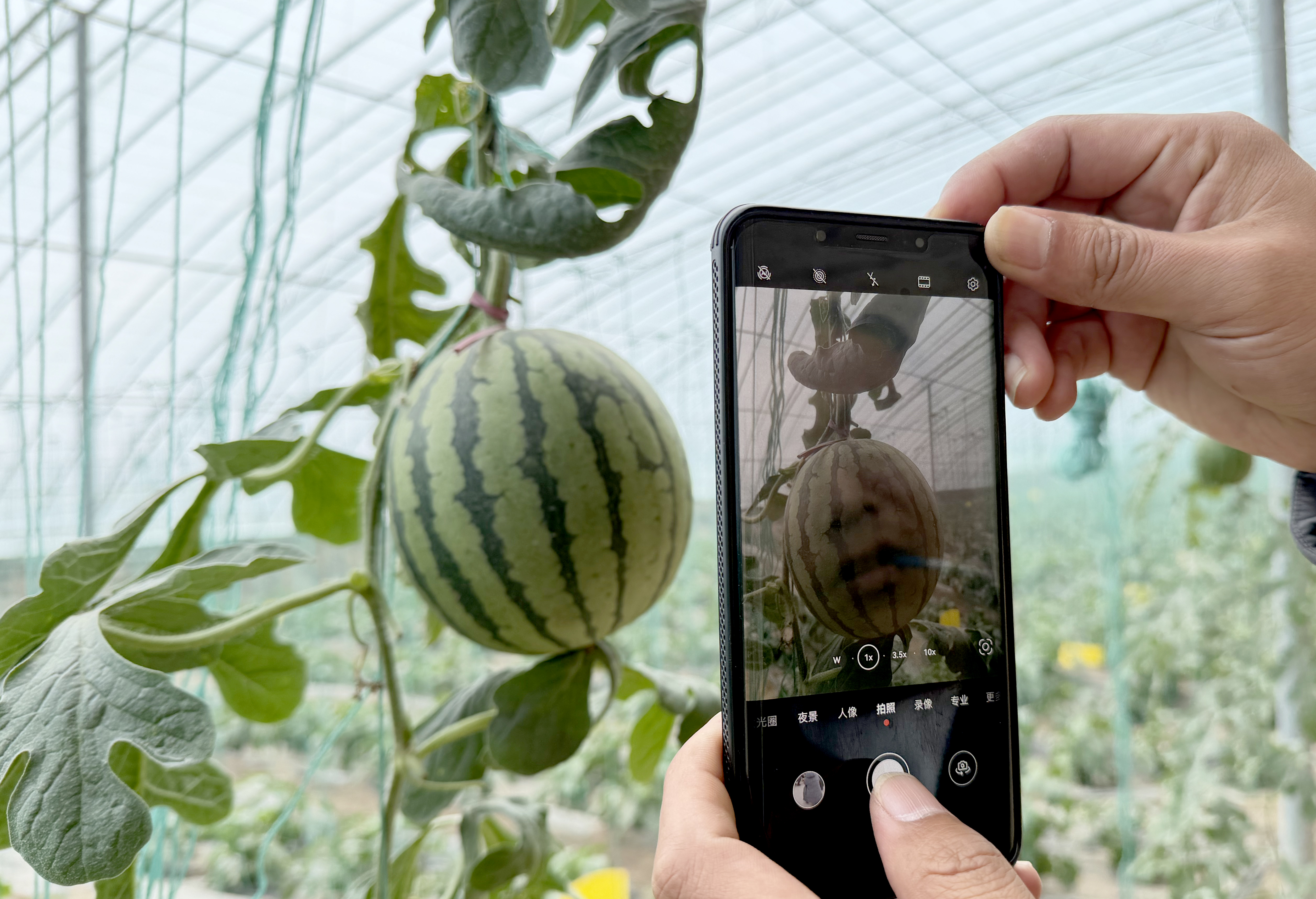 近日,在尉犁县戈壁设施农业产业园的智能日光温室里,游客正忙着拍摄长势喜人的西瓜。该产业园项目规划建设智能日光温室2800座,目前一期240座智能日光温室建设正有序推进,已有91座投用,试种西瓜、辣椒、水果萝卜、贝贝南瓜等果蔬达40余种。项目整体建成后,可提供就业岗位3500个,预计年产果蔬14万吨,年产值将达9.8亿元。