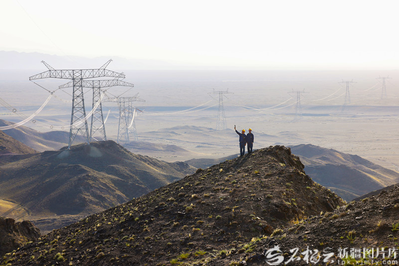 2025年7月20日,新疆送变电有限公司员工对昌吉—古泉±1100千伏特高压直流输电线路进行巡检。张灵军摄