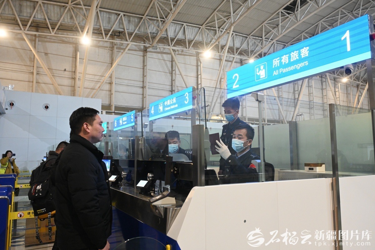 1月15日,喀什出入境边防检查站民警为前往塔什干的旅客办理出境手续。李晨晨摄