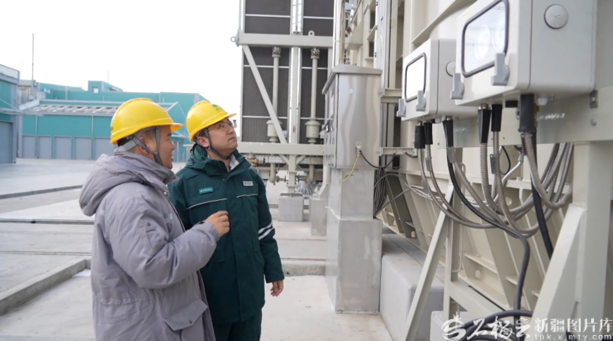 1月15日,走进哈密——重庆±800千伏特高压直流输电工程(以下简称“疆电入渝”工程)巴里坤换流站,运行二班副值长刘江和同事们正在巡检设备。