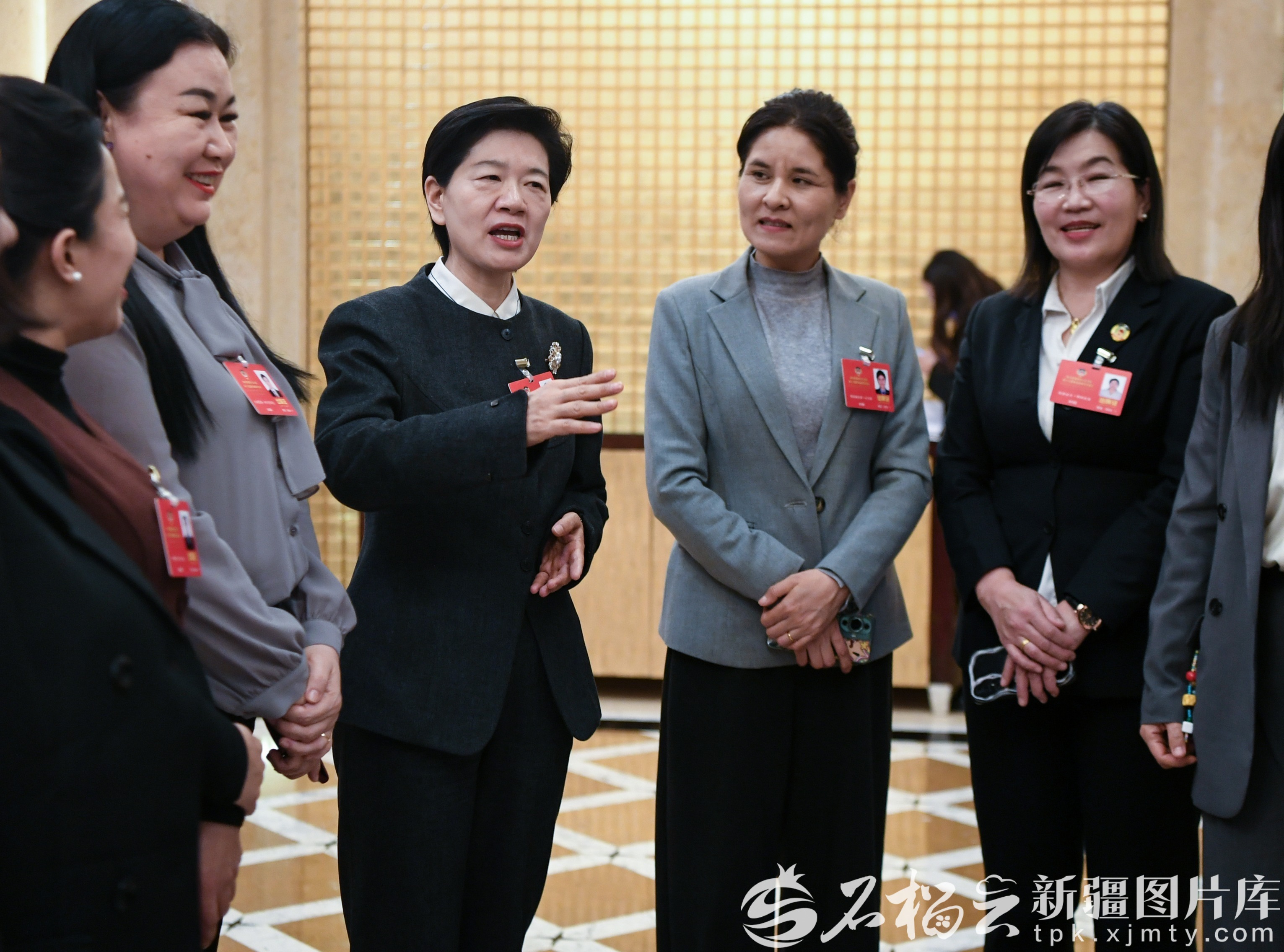 1月27日,共青团和青联、总工会、妇联、台联、侨联、对外友好界委员分组讨论政府工作报告、自治区“十五五”规划纲要草案、计划草案报告和预算草案报告。图为委员们在会议间隙交流。石榴云/新疆日报记者 秦梅花摄