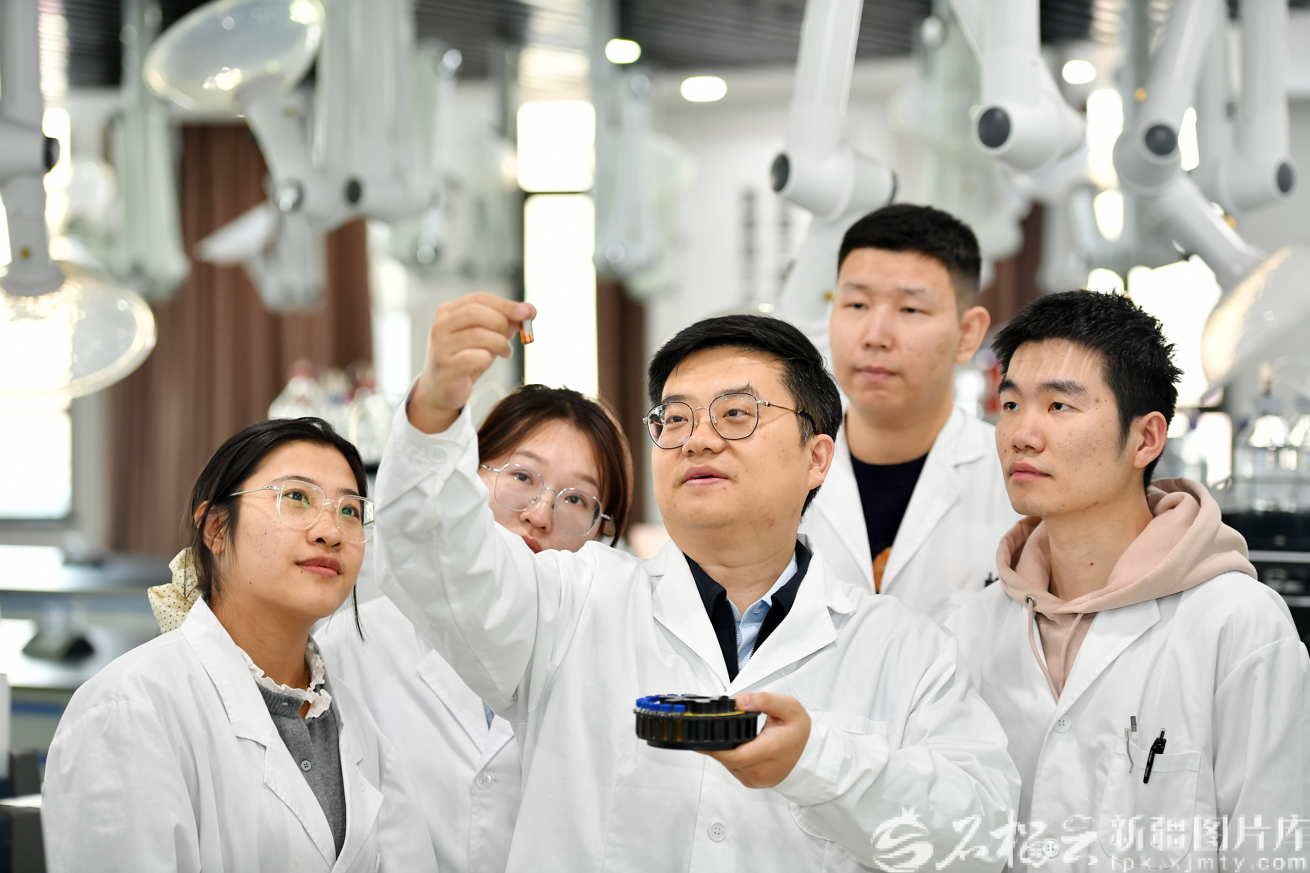 1月21日,李柯翱指导实验室工作人员做实验。