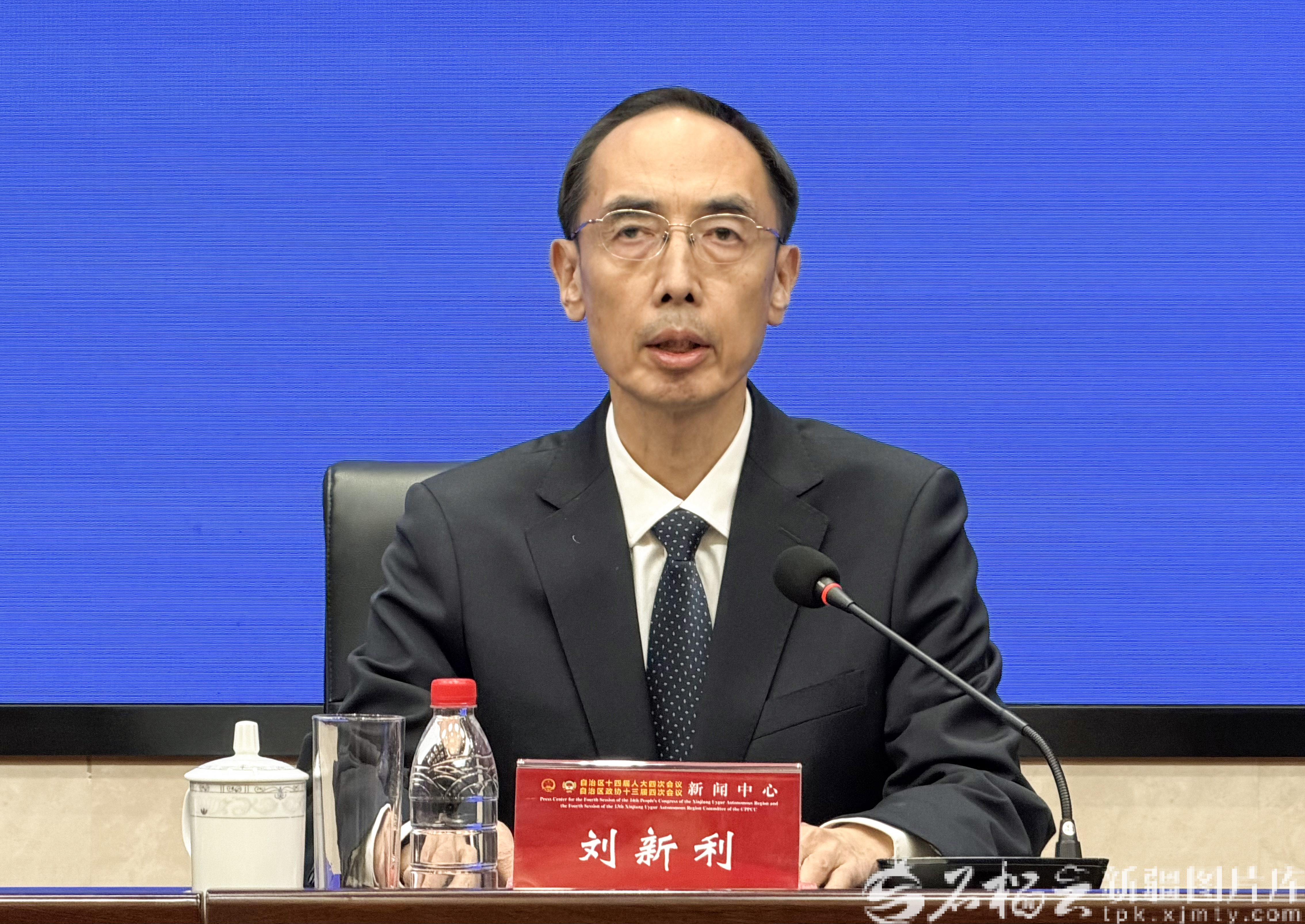2026新疆两会第四场新闻发布会1月29日16时举行。图为自治区民政厅党组书记、副厅长刘新利介绍情况。天山网-新疆日报记者 李瑞摄
