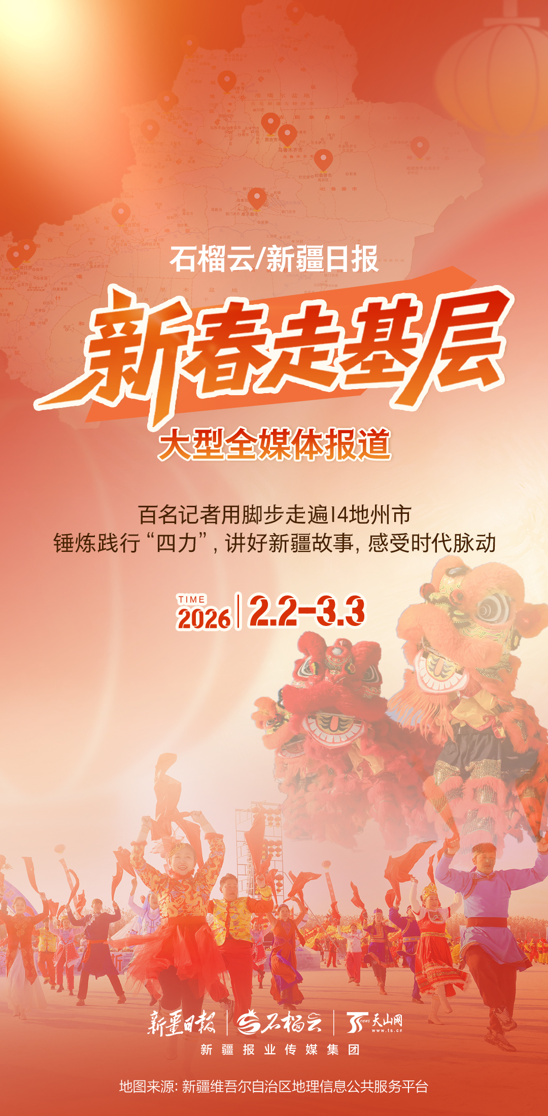 新疆日报社(集团)2026年“新春走基层”大型全媒体报道今日正式启动,活动持续至3月3日(正月十五),以沉浸式体验、创新化表达、融媒式传播,全方位展现中国式现代化新疆篇章的生动实践。