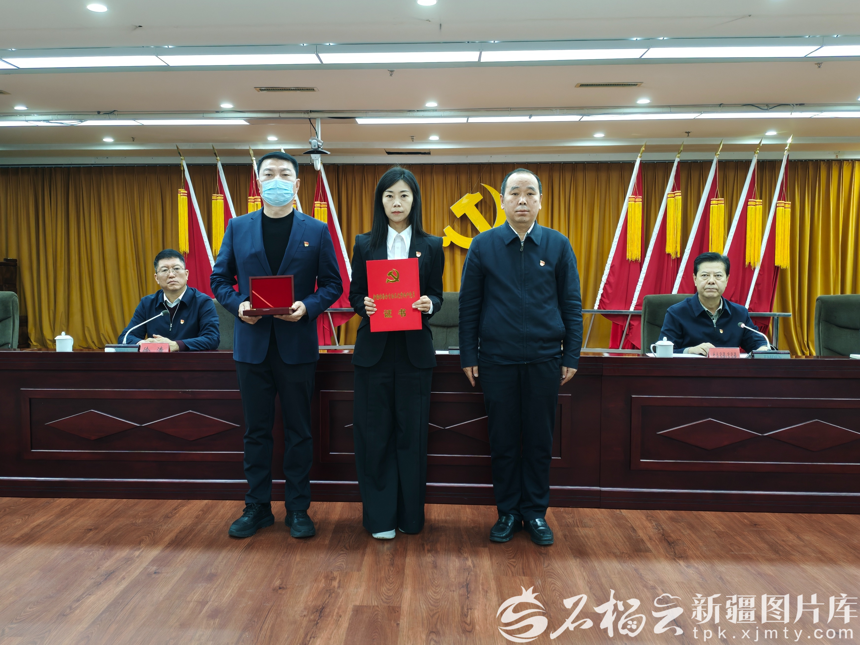 2月10日,自治区农业农村厅负责同志向贺娇龙同志亲属颁授“新疆维吾尔自治区优秀共产党员”证书、奖章。天山网-新疆日报记者 刘毅摄