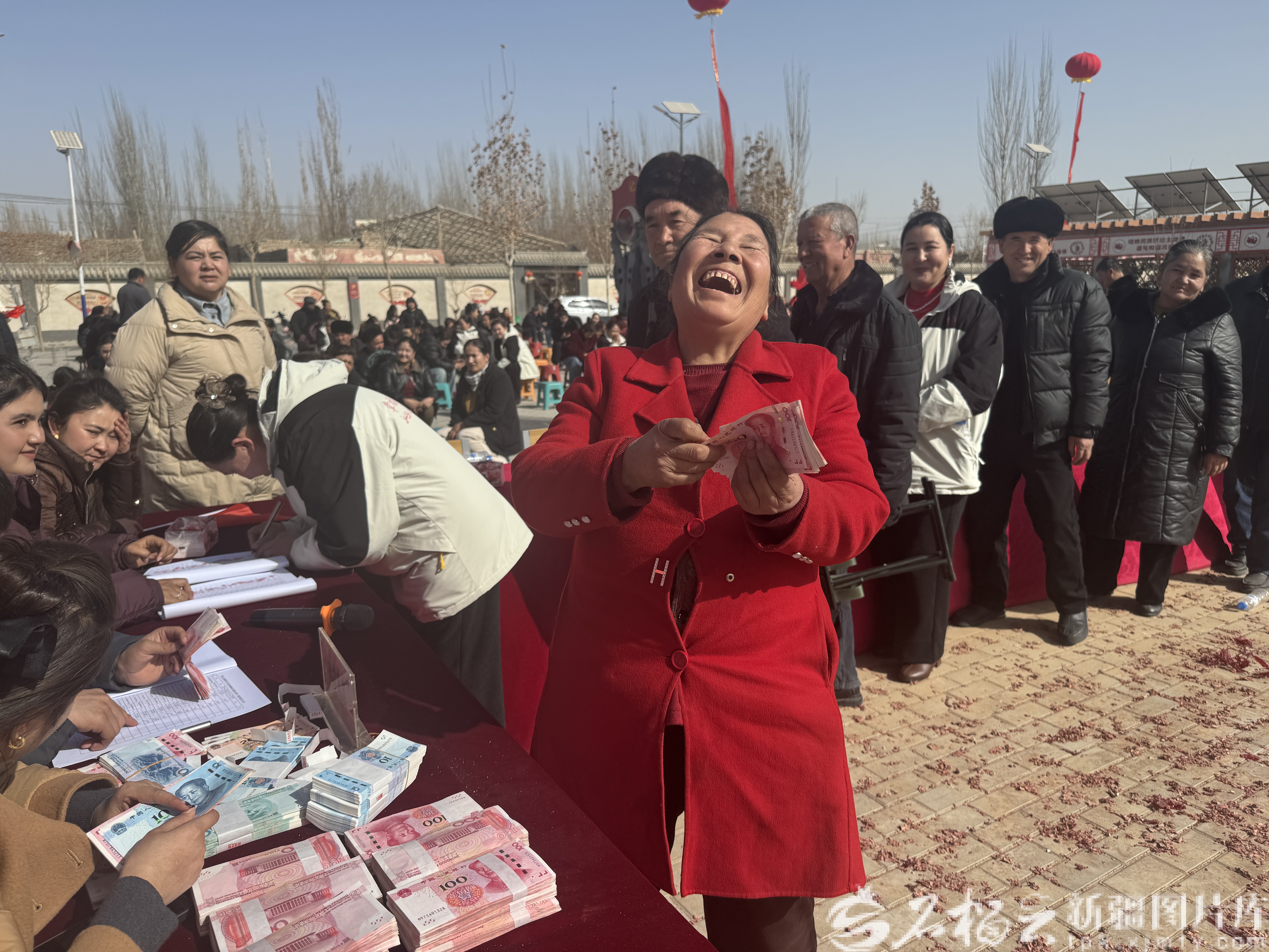 如今,罕艾日克村先后建起了馕厂、食品厂、冰糖厂、坚果加工厂和培训基地,构建起多元化产业矩阵,为各行业输送专业人才,形成产、学、研一体化发展格局,引领带动全镇村集体经济发展。2025年,该村集体收入首次突破百万元,人均年增收4000元,于是有了2026年初的分红。