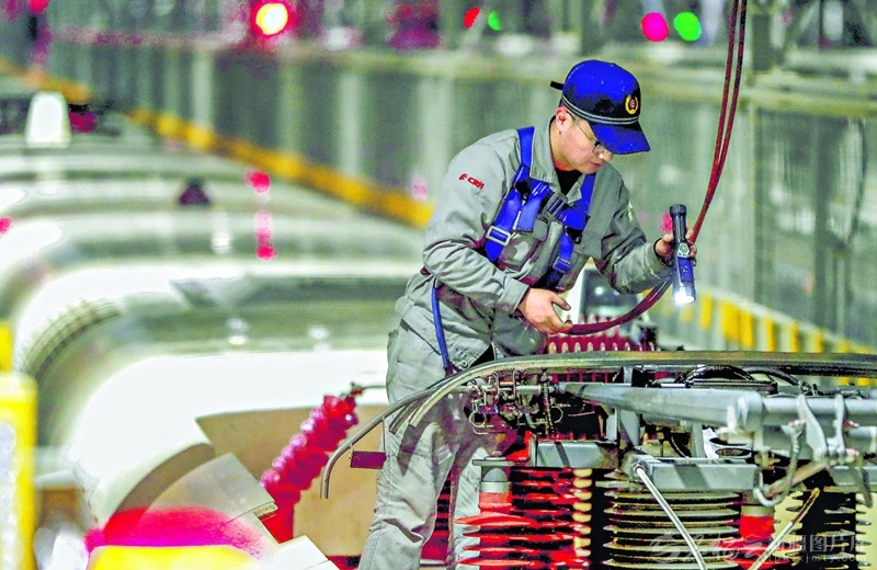 2月4日,中国铁路乌鲁木齐局集团有限公司乌鲁木齐车辆段动车片区,机械师检查维护返程动车的电力系统。