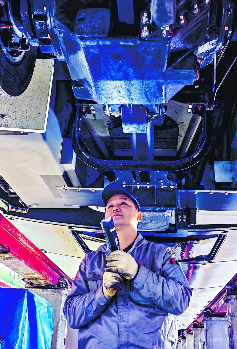“我们24小时运转,140多人,多部门配合,一刻不能停,确保零缺陷、零误差。”乌鲁木齐车辆段动车运用所副所长、工程师李晓东搓了搓手,哈出一口白气,“动车安全,牵着千家万户的团圆。我们多一份责任心,旅客就多一分安心。”2014年5月投入使用以来,乌鲁木齐车辆段动车片区承担着新疆铁路全部动车组的运用维修任务。6线检修库、2线临修库、30线存车场、23项先进设备,支撑着CR200J、CRH5E、CRH5G等多型动车往返于兰州、西安、哈密、伊宁、库尔勒等城市之间,撑起春运的“大动脉”。