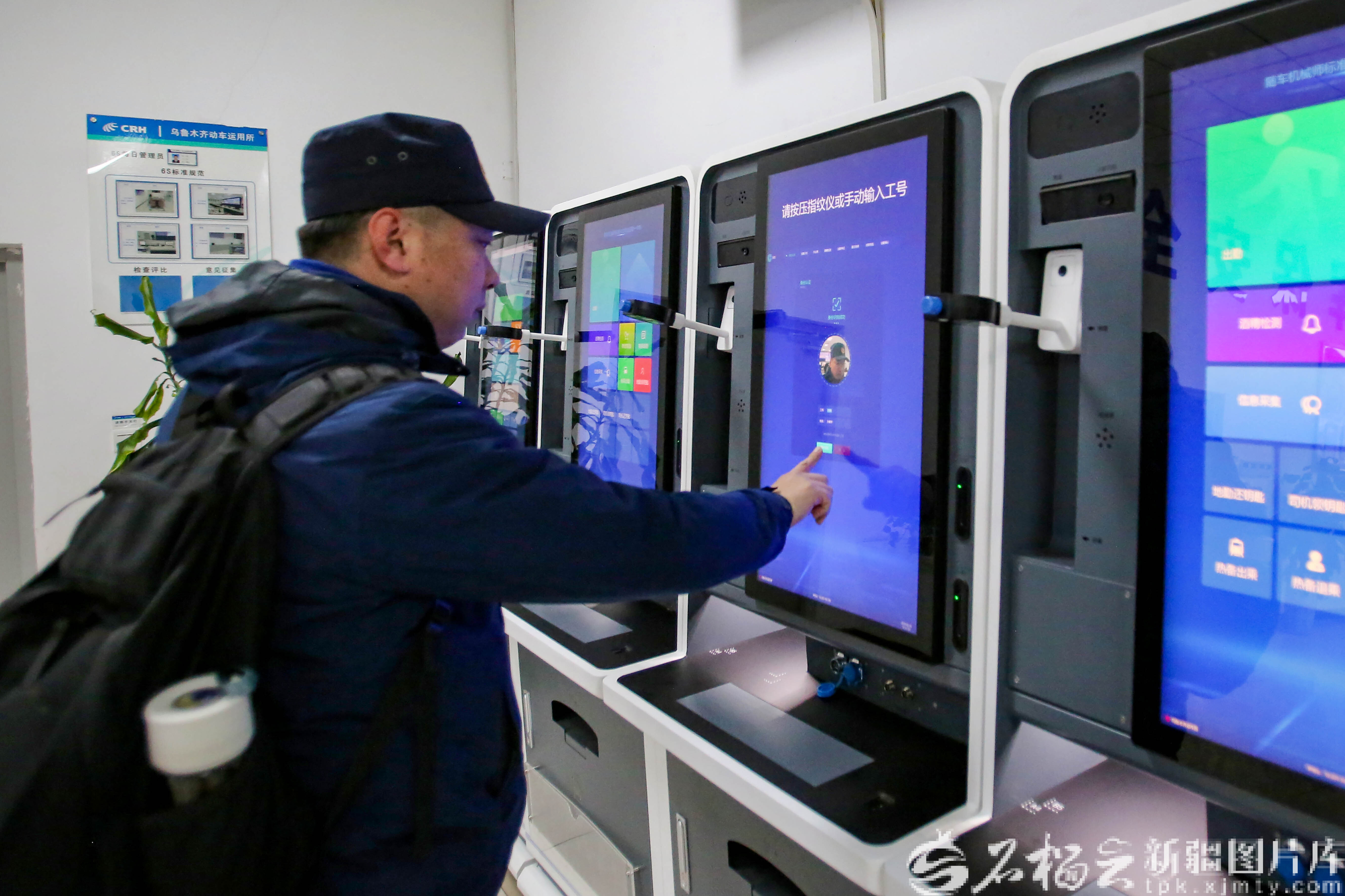 2月5日凌晨,DJ7002次动车组随车机械师孙春宇完成人脸识别与酒精测试后领取动车钥匙。