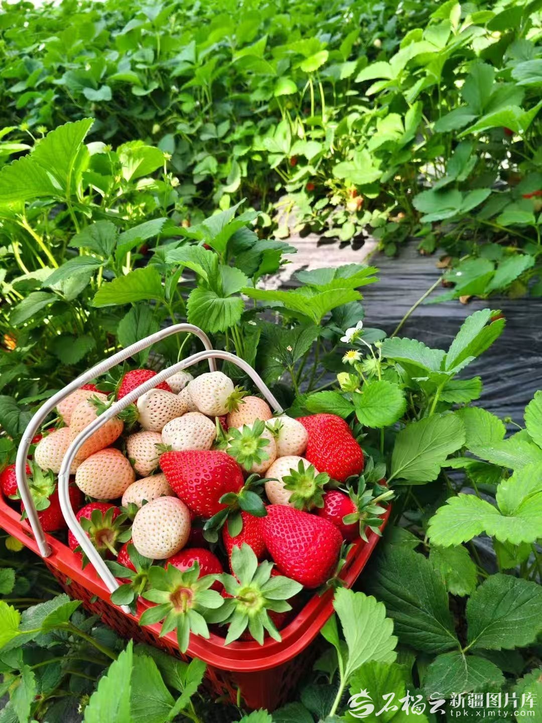 游客正在摘草莓。天山网-新疆日报记者 王新红摄