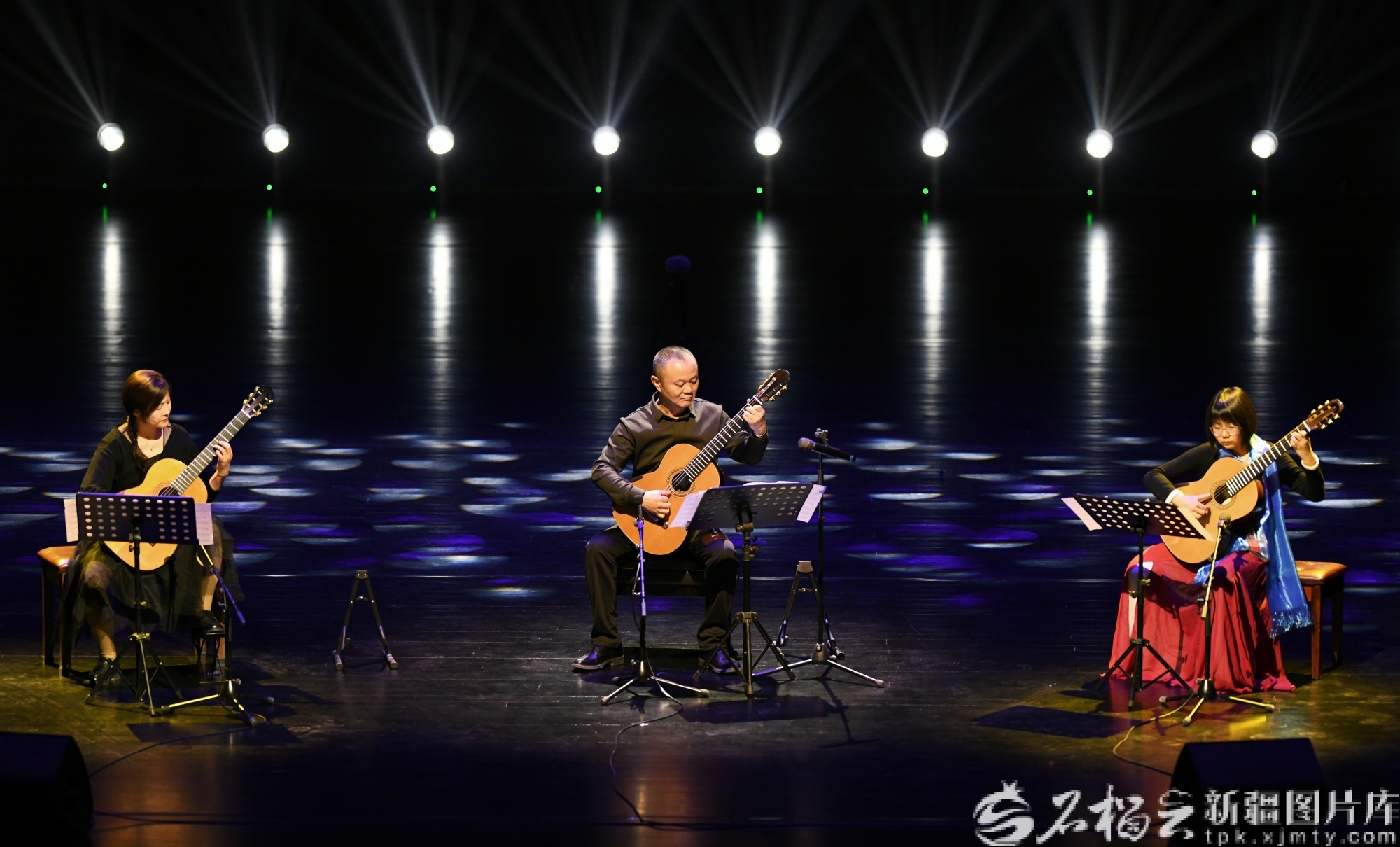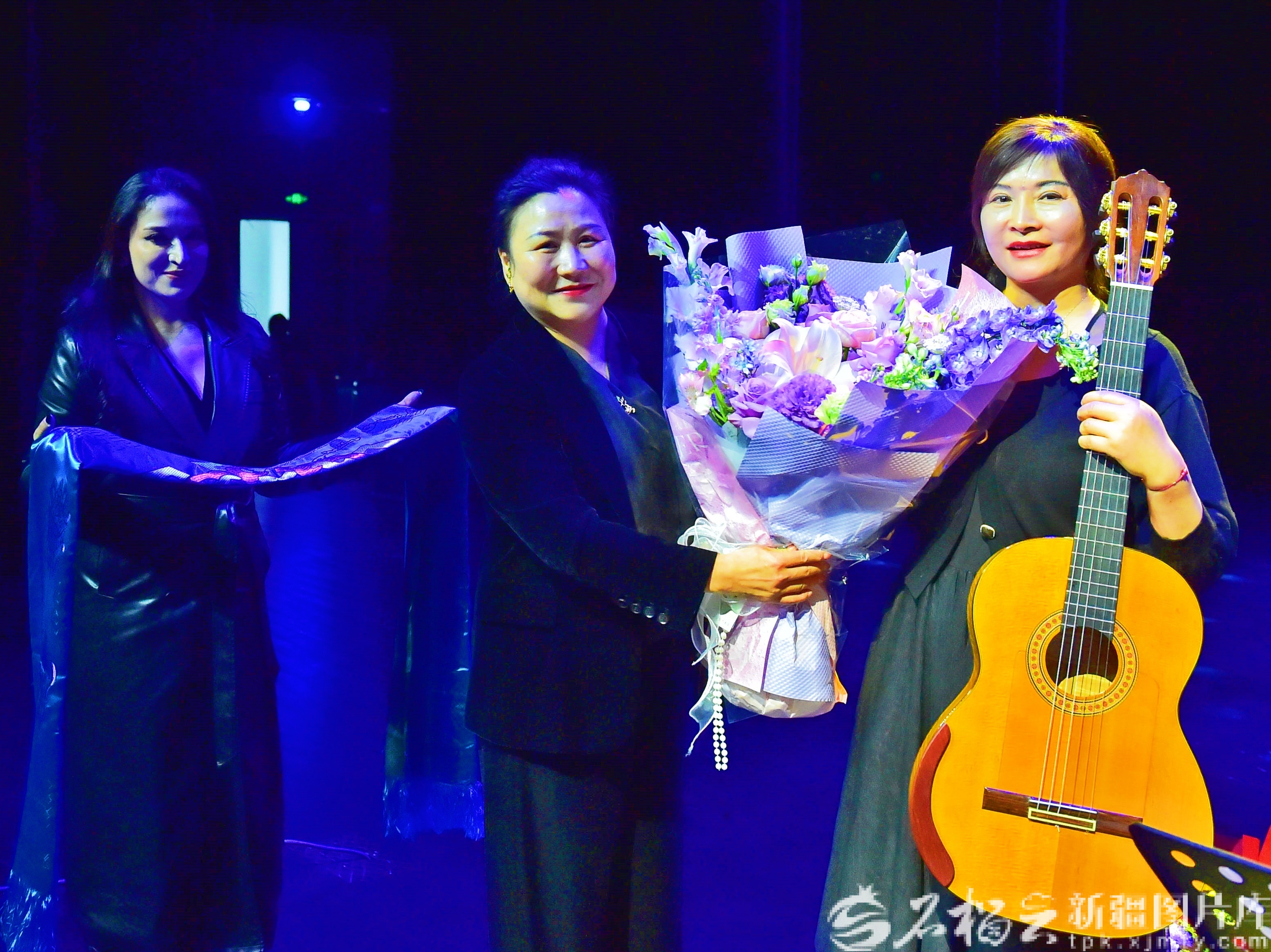 2月23日,巴音郭楞蒙古自治州首届“天山之春”音乐节吉他演奏专场,演员现场表演吉他合奏。