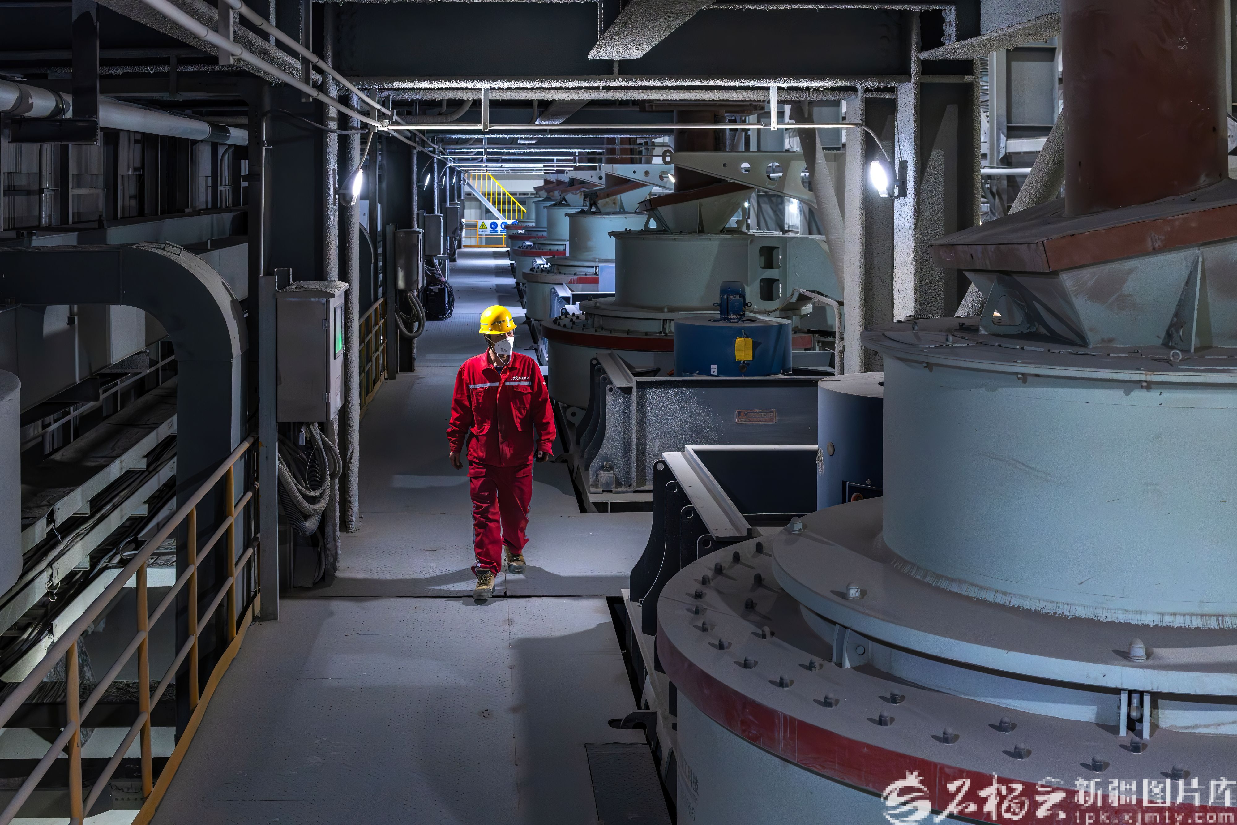 新疆和田大红柳滩稀有金属矿开发建设项目选矿厂内工作人员在巡检。贾新农摄