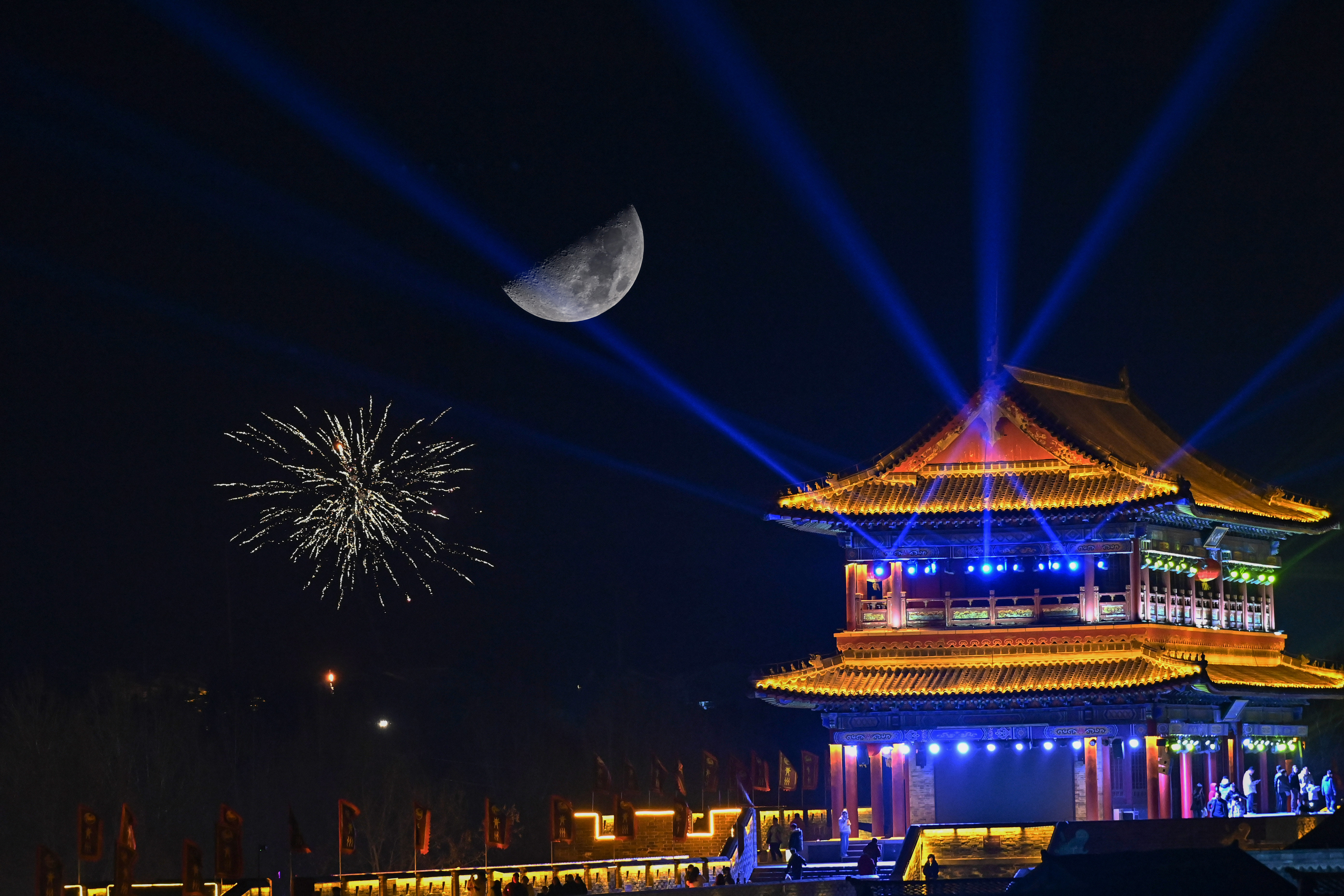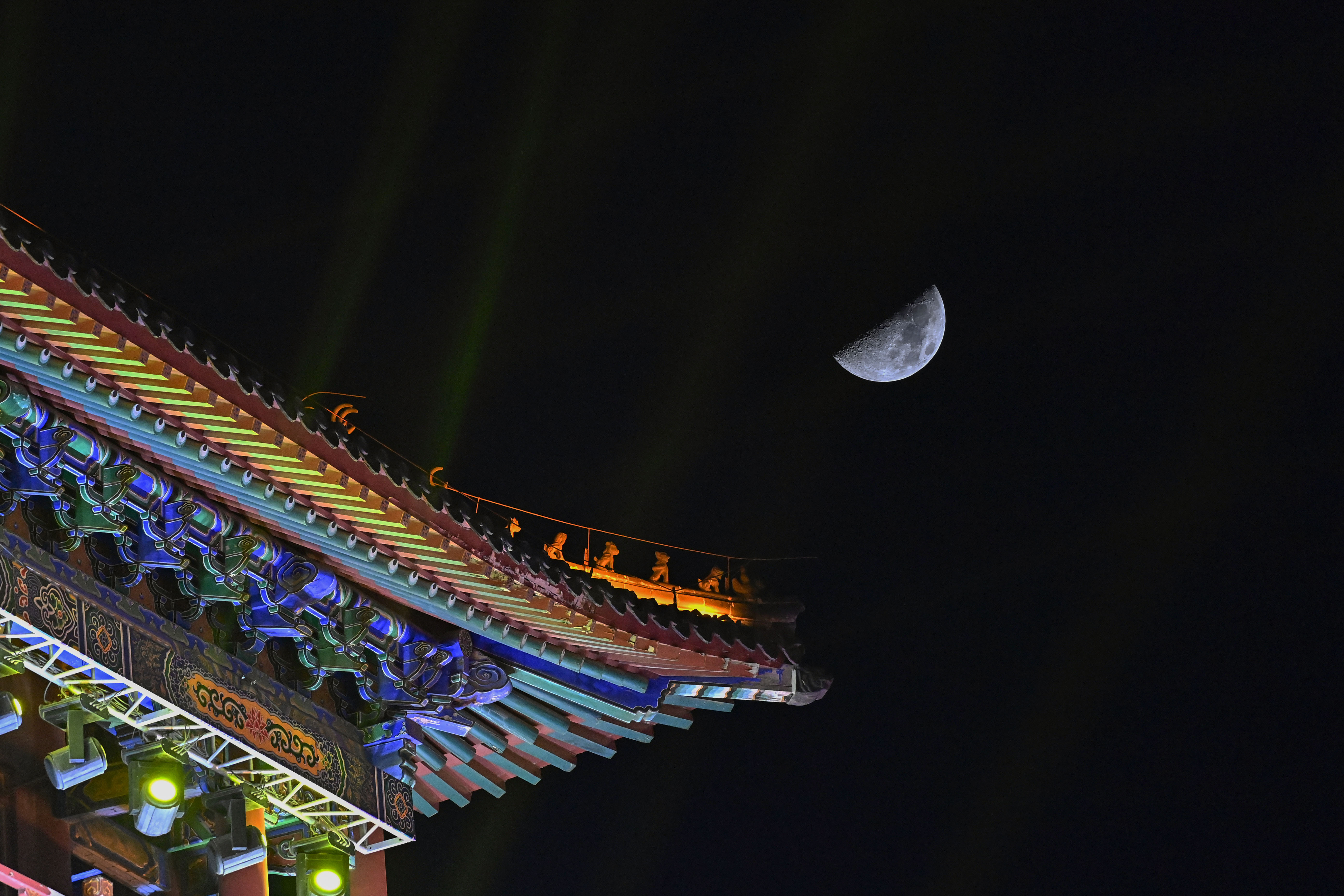 今年最大上弦月现身 一睹精彩瞬间