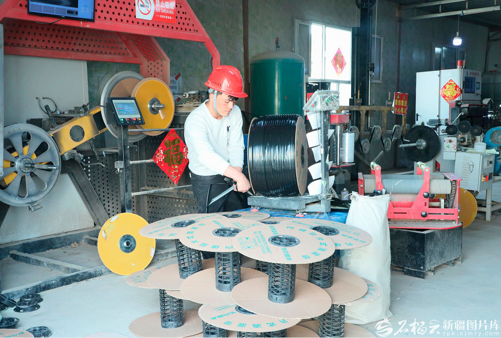 2月24日,库车市江水滴灌制造有限公司车间生产线上,工人正在忙碌作业。吐尔松·托胡提 摄